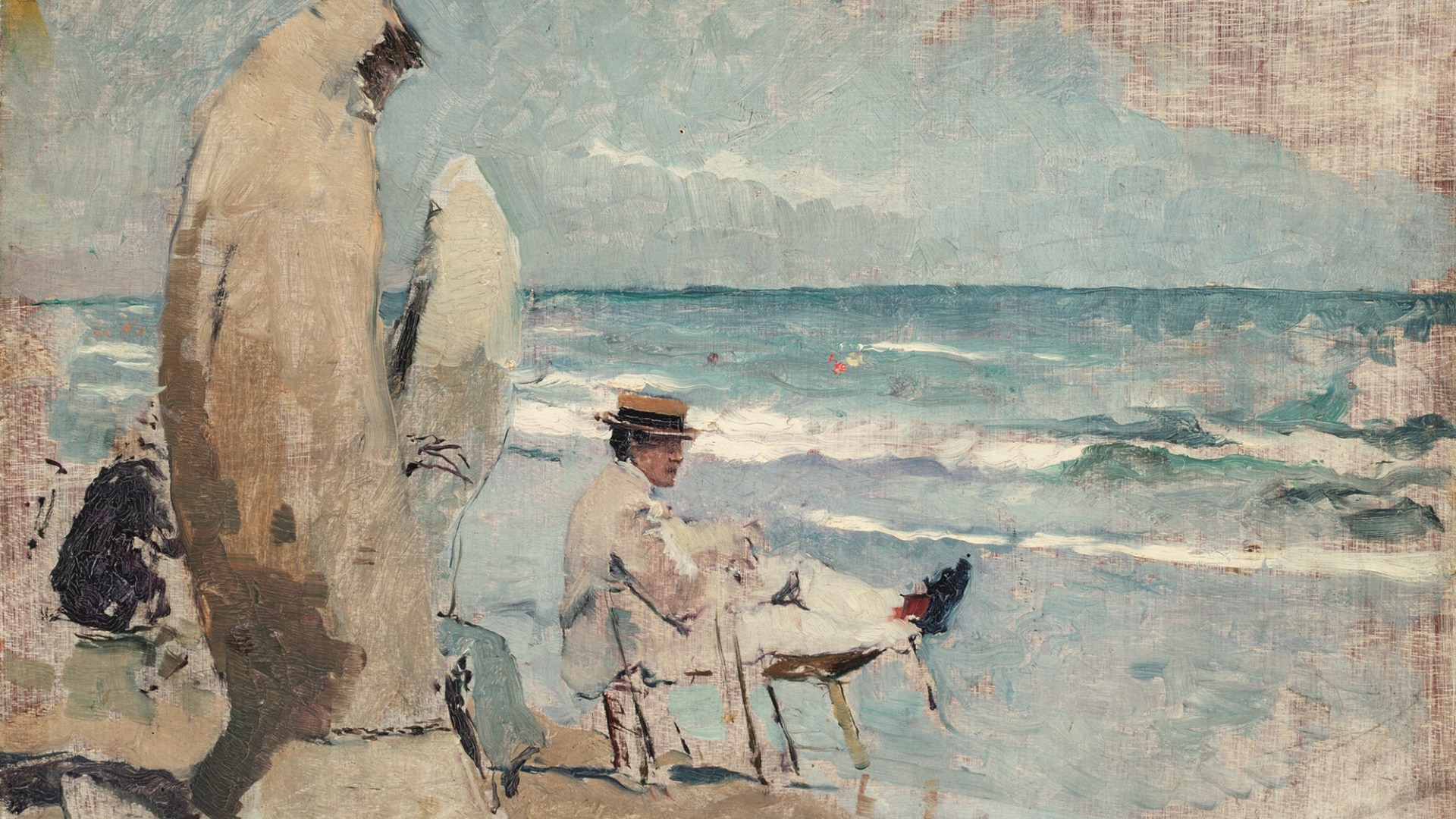 Negli ultimi anni, gli appunti di piccolo formato che dipinge sulle spiagge del Nord, in particolar modo a San Sebastián, mostrano una smania di sperimentazione emozionante: costruisce le figure con masse di colore molto piane, separate tra loro da piccole strade non dipinte, che lascia nel tono grigio neutro dell’imprimitura del cartone. Questa esecuzione abbreviata mostra un Sorolla essenziale che continua ad approfondire, attraverso i suoi “piccoli formati”, la sintesi visiva delle figure all’aria aperta.