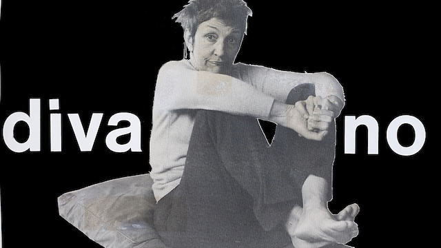 Mirella Bentivoglio, Diva/no, 1973, collage su cuscino di divano in teca di plexiglas, 64x67cm. © Gramma_Epsilon Gallery Athens