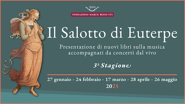 Il Salotto di Euterpe vuol essere un luogo eletto, nel Salone della favolosa Biblioteca della Fondazione Marco Besso, dove siano convocati, a parlare di un libro e a conversare sulla musica relativa al libro del giorno, scrittori, artisti, critici d’arte, musicisti, compositori e interpreti di spicco per un pubblico scelto. Pianisti e cantanti rinomati, nonché strumentisti e docenti di altissimo valore eseguiranno dal vivo musica attinente ai temi centrali sviluppati dai recenti libri qui sotto descritti, presentati dai loro autori/curatori assieme ad altre personalità, coinvolgendo un ricchissimo arco della Storia della Musica dal Settecento al Novecento.