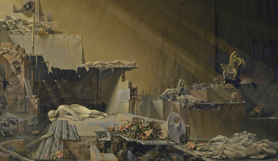 Lo spettatore è invitato a perdersi nel tentativo di decifrare i numerosissimi riferimenti letterari e artistici, mentre partecipa dell’inquietudine che appartiene all’animo dell’artista e al tempo stesso all’umanità del Novecento.