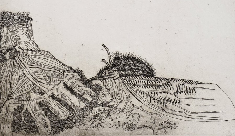 Giuseppe Zigaina, dettaglio, 1981 La mano e l'insetto, 1981, acquaforte, 247x245mm
