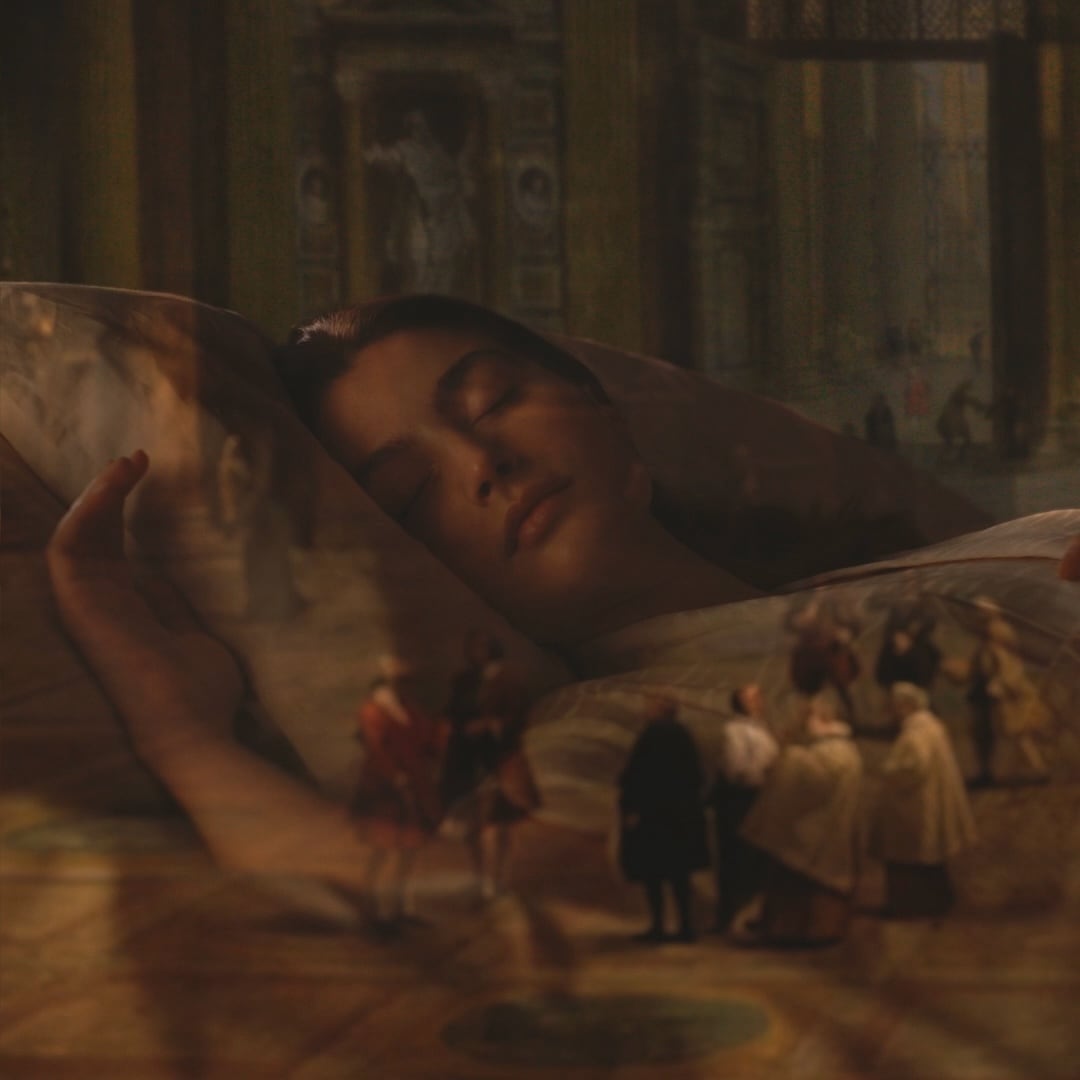 Sopra, un fotogramma della videoinstallazione Tutti gli DÈI di Ferzan Özpetek, parte della mostra Meraviglie del Grand Tour al Museo Poldi Pezzoli.©FondacoItalia