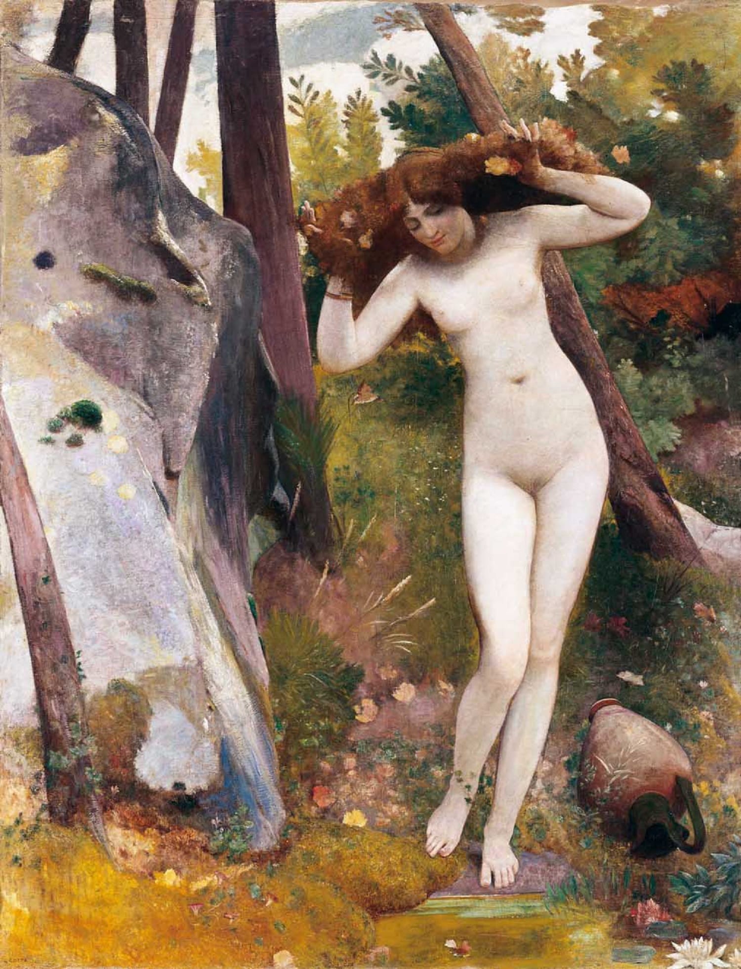 Nino Costa, La Ninfa del Bosco (Alla Fonte), 1862-1897, olio su tela, 208x160cm., Galleria d’Arte Moderna, Roma