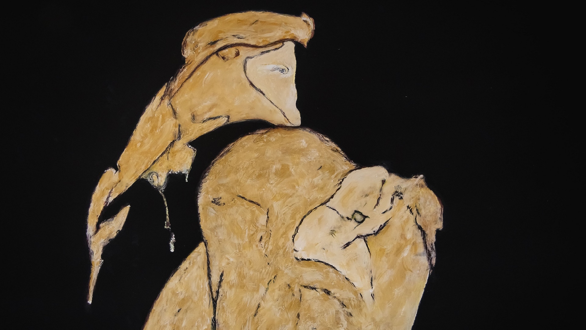Bizhan Bassiri, Principe. Il nottambulo del Pensiero Magmatico (dettaglio). Legno, pittura su carta, 320 × 120 cm (due dipinti speculari) ph. Michele Alberto Sereni