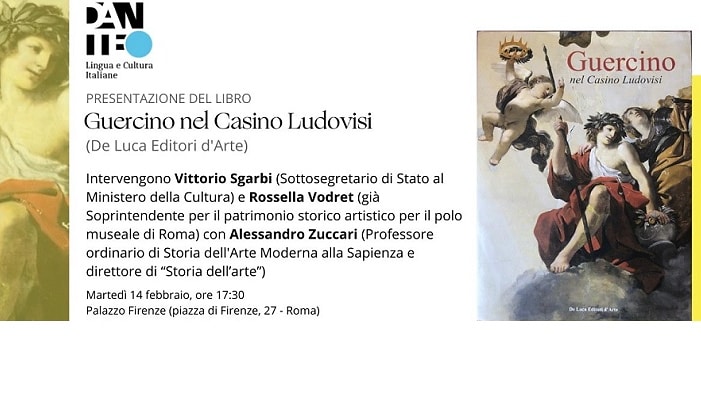 Martedì 14 febbraio alle ore 17:30 presso la Sala del Primaticcio di Palazzo Firenze (Piazza di Firenze, 27 - Roma) la Società Dante Alighieri presenta Guercino nel Casino Ludovisi (De Luca Editori d'Arte), numero monografico della rivista “Storia dell’arte” diretta da Alessandro Zuccari, professore ordinario di Storia dell'Arte Moderna alla Sapienza di Roma.