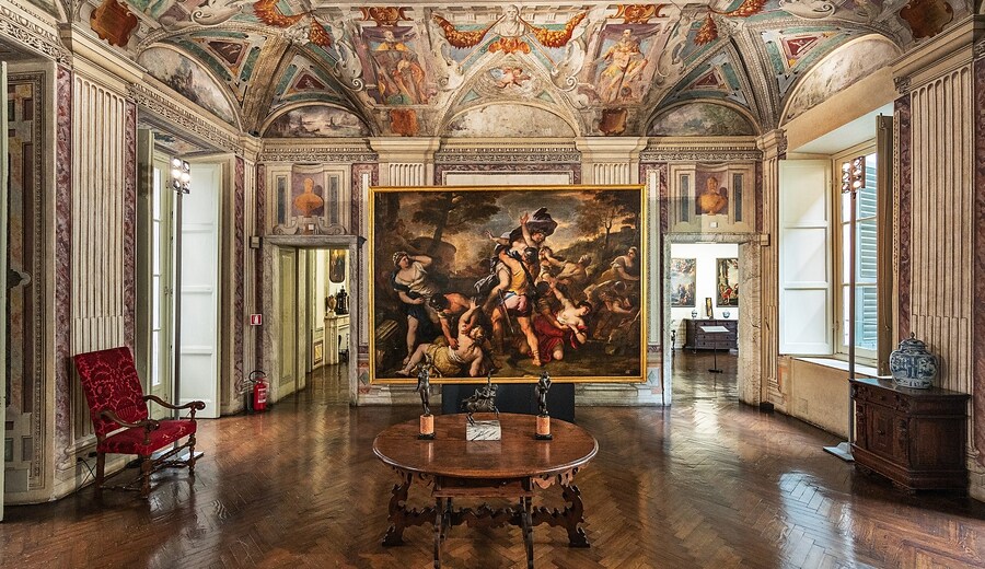 Salone del primo piano nobile di Palazzo Spinola a Genova; sula parete, “Il Ratto delle Sabine” di Giordano Luca, 1680 ca.