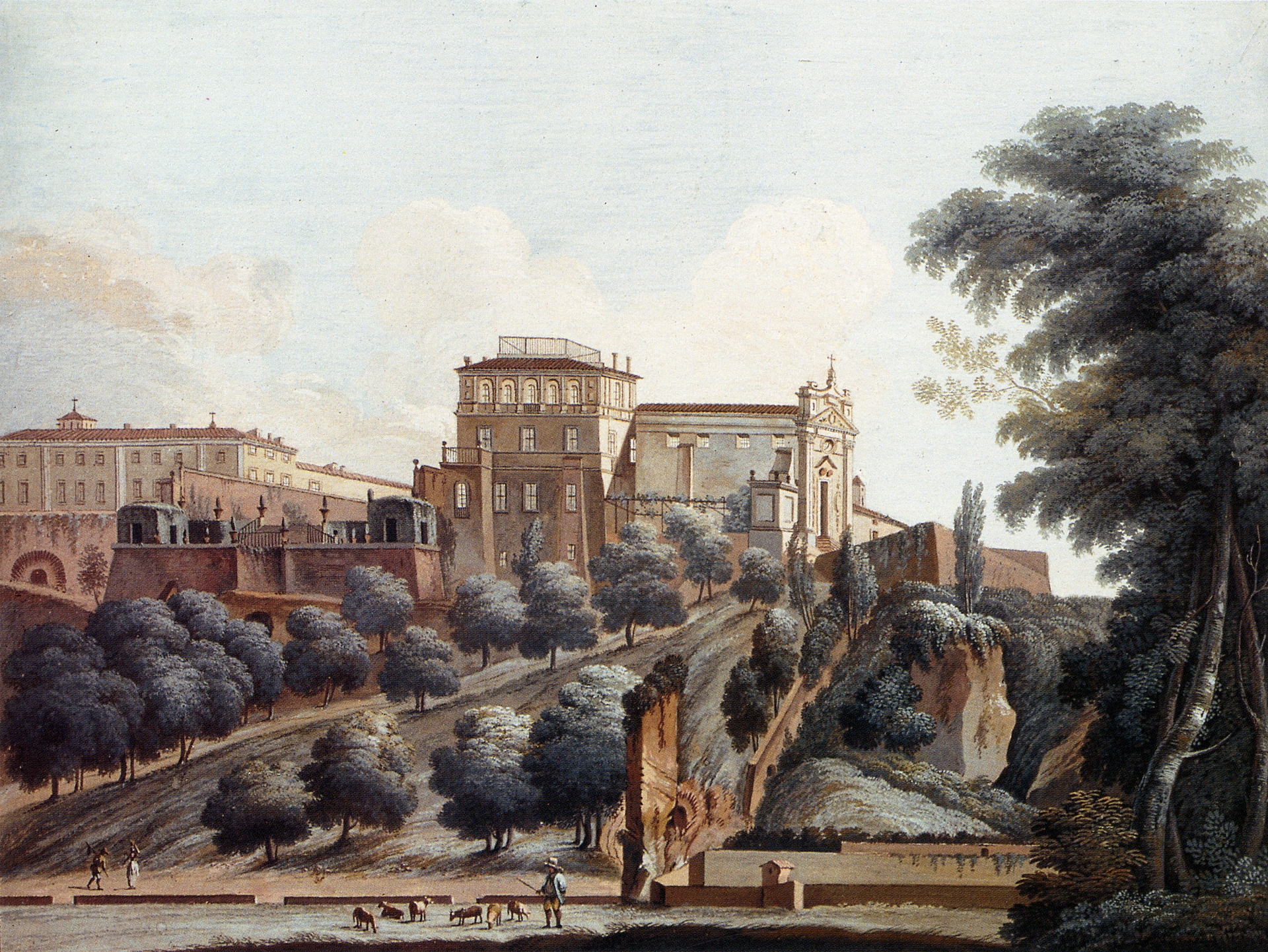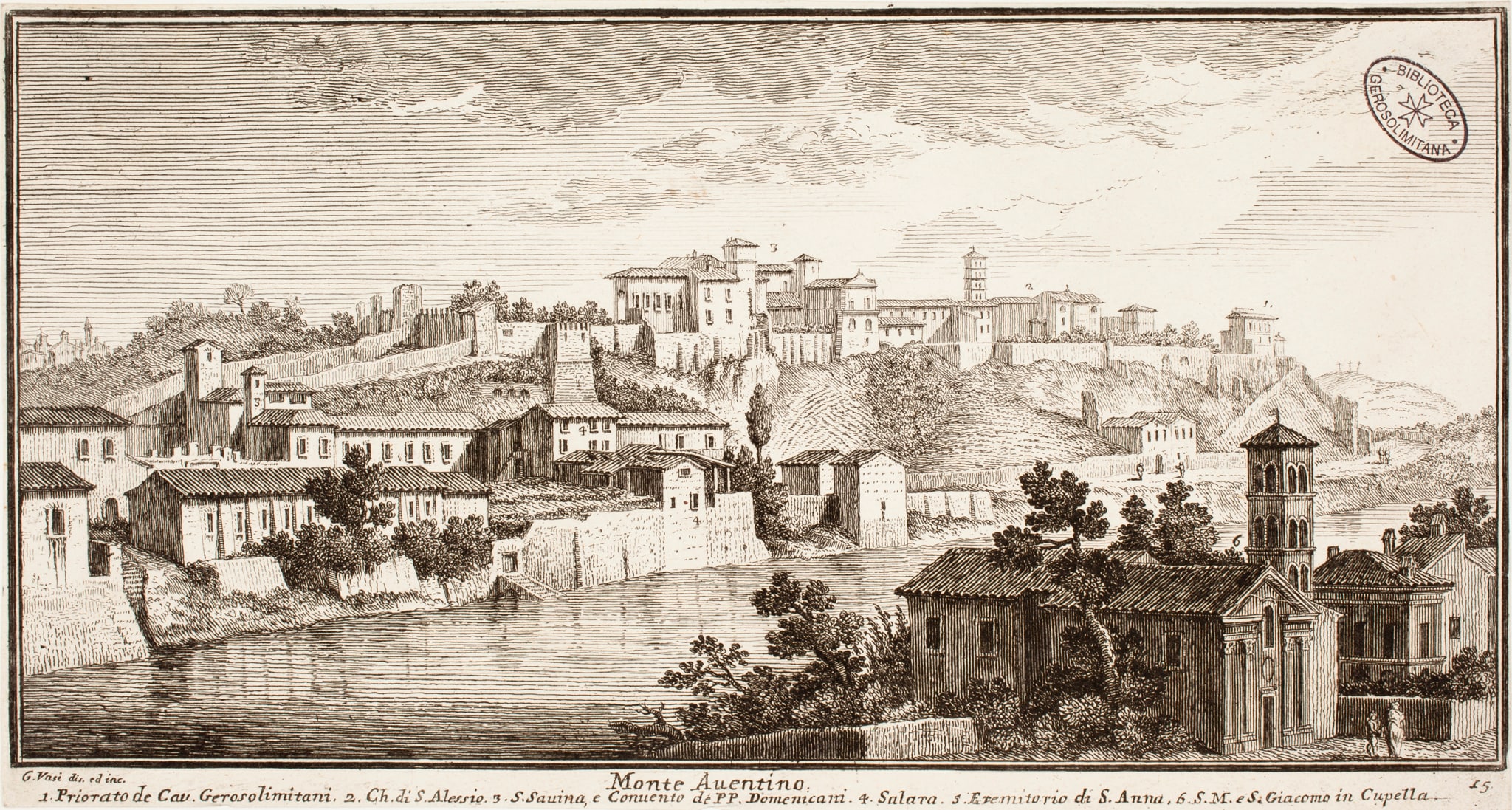 Giuseppe Vasi, Veduta del Monte Aventino, dettaglio, pubblicata nella raccolta Veduta di Roma sul Tevere, 1744- 48