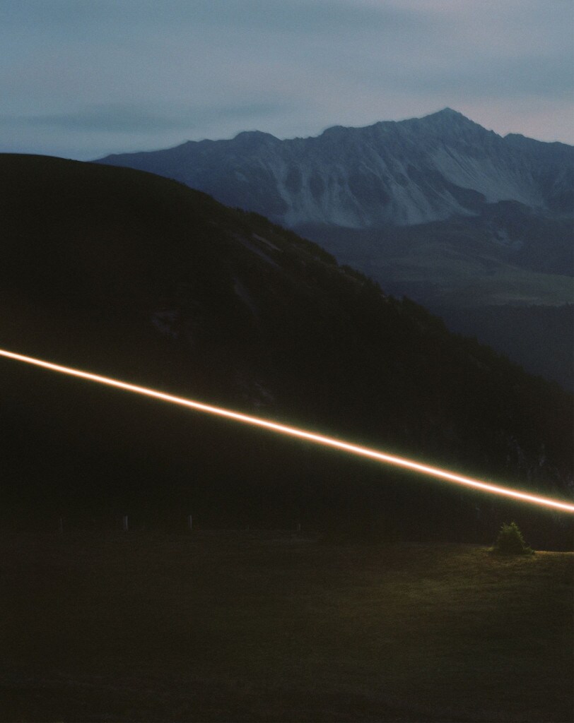 Segni di luce che modificano il paesaggio creando nuove forme costituiscono la dichiarazione visiva della guerra in senso anti-storico e anti-monumentale del duo artistico Onorato&Krebs. Immagini realizzate nella regione di confine tra Italia e Svizzera attraverso l’uso di droni, gli elementi bellici più tecnologicamente avanzati, che lasciano una traccia destinata a scomparire ma che, catturata dalla macchina fotografica, genera una forma nello spazio, collocandosi come un monumento effimero.