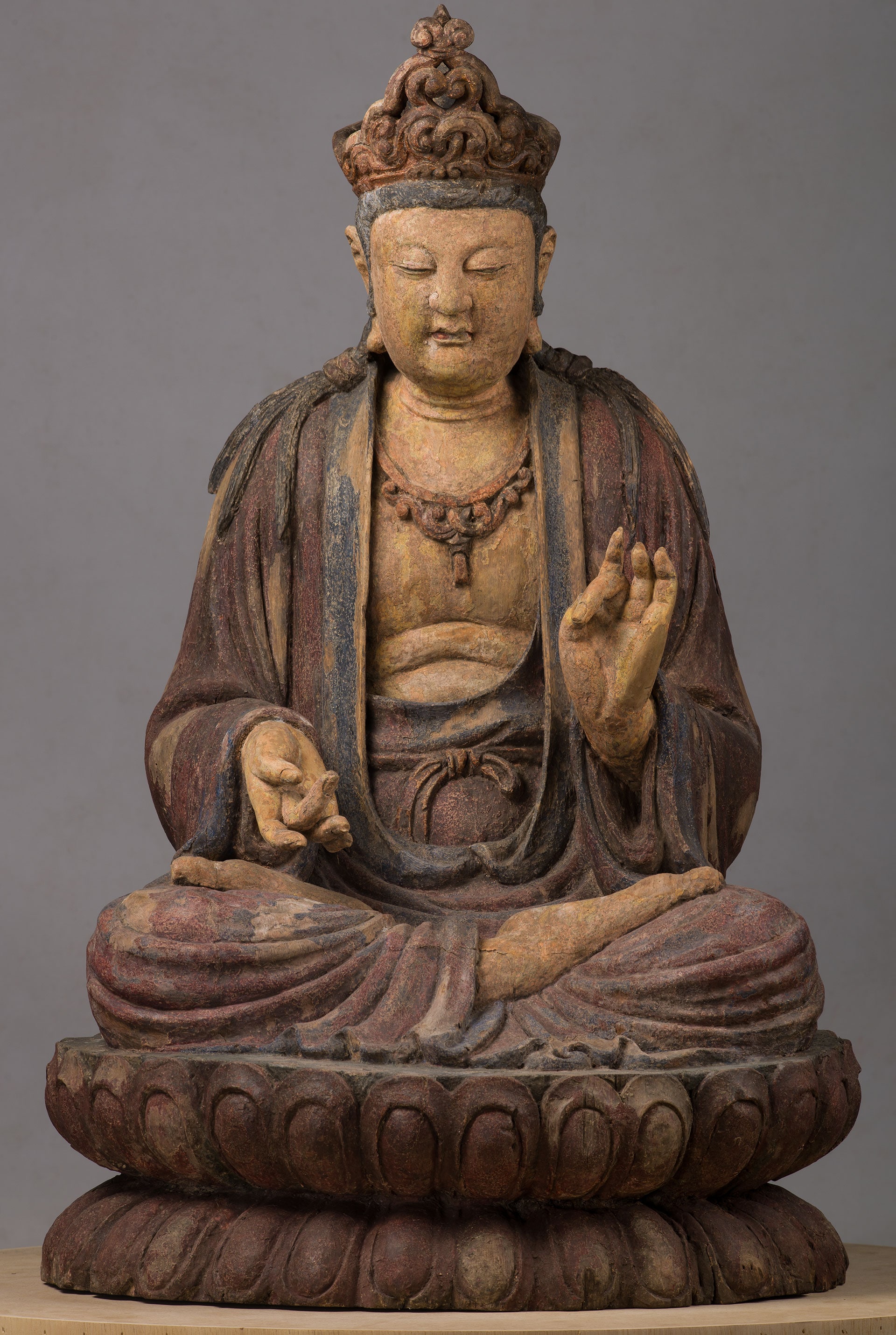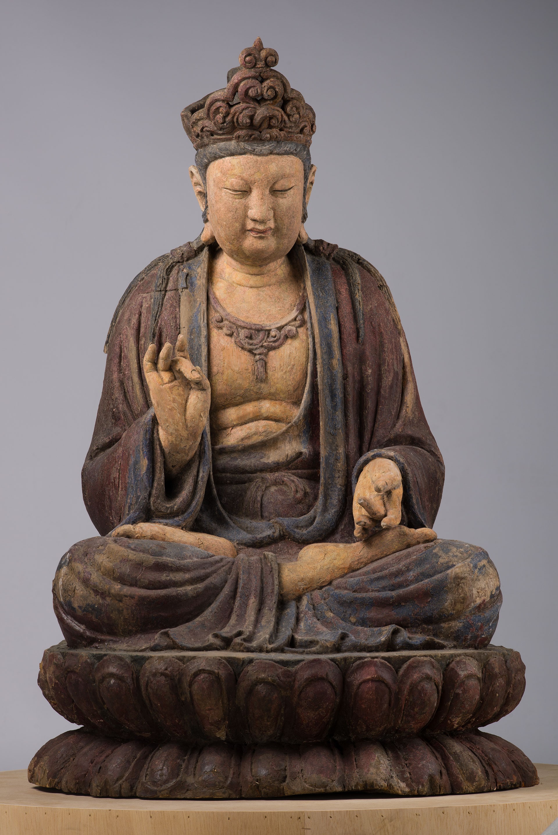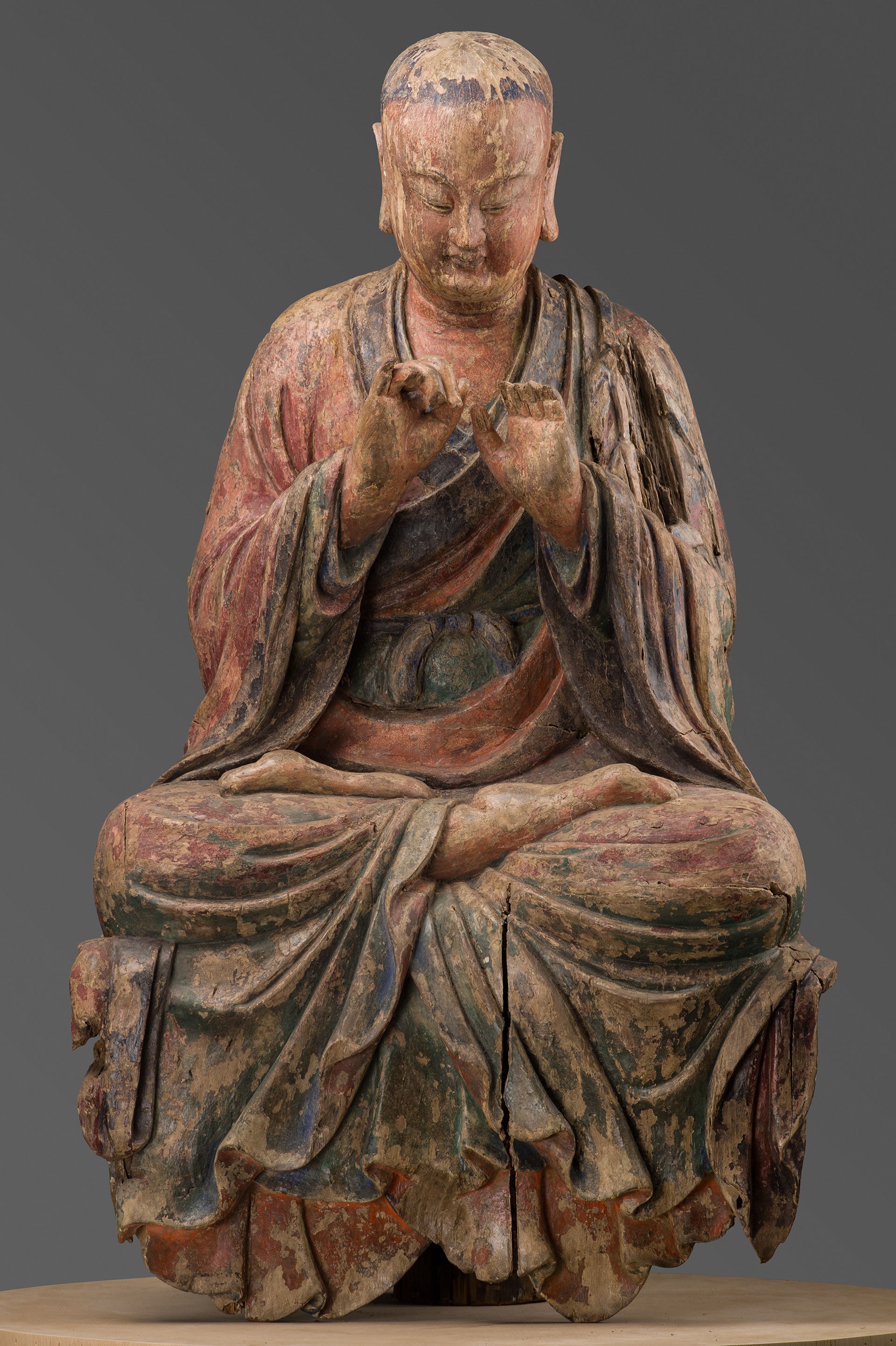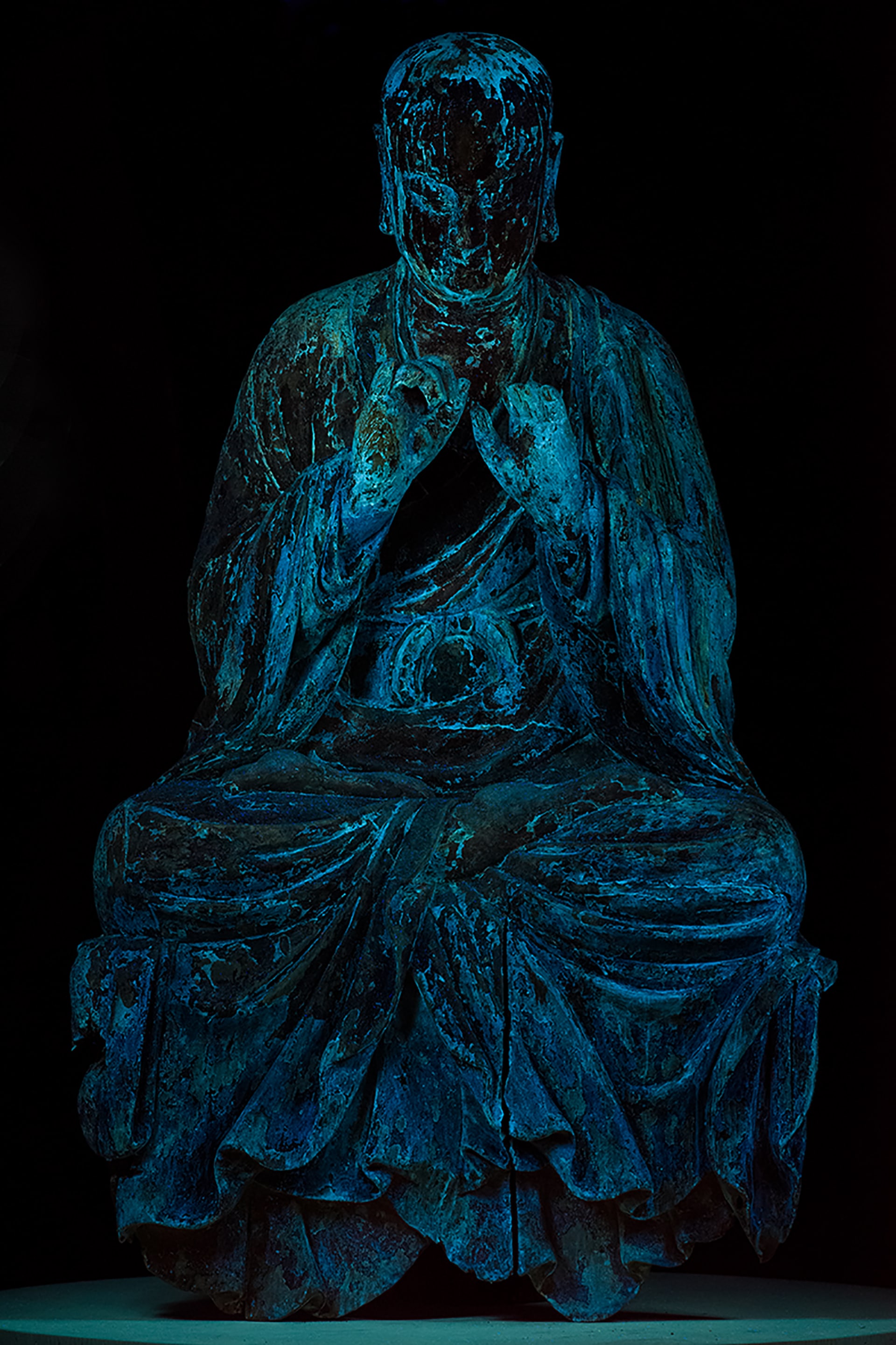 Nelle sale dedicate alle esposizioni temporanee, in uno spazio essenziale ed evocativo, oltre venti grandi statue buddhiste in legno o pietra di epoche diverse (dal V al XIX secolo) delle collezioni del MAO sono accostate ad alcune sculture - tra cui oltre trenta bronzetti votivi della collezione Auriti e due straordinarie teste scultoree in pietra di epoca Tang (618-907 d.C.) - provenienti dal Museo delle Civiltà di Roma, con cui il Museo ha avviato una proficua e articolata collaborazione, e a un importante prestito proveniente dal Museo d'Arte Orientale E. Chiossone di Genova.