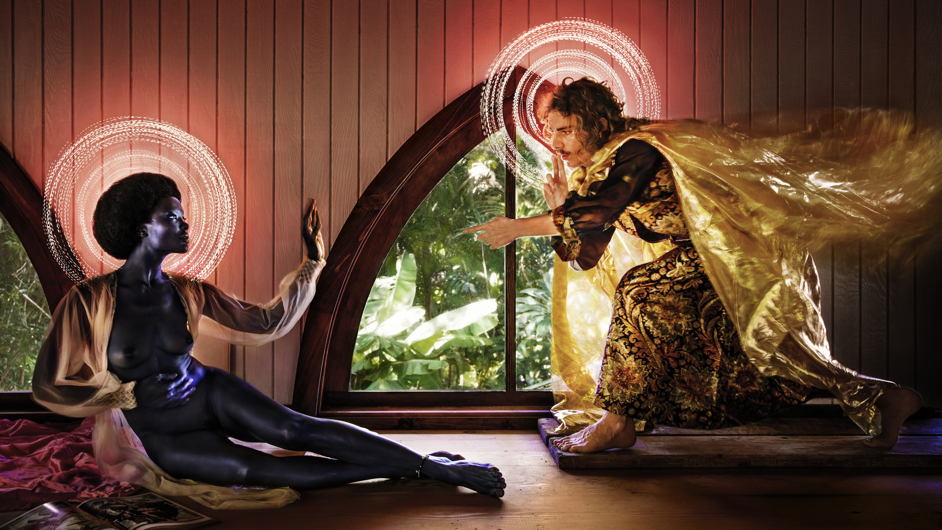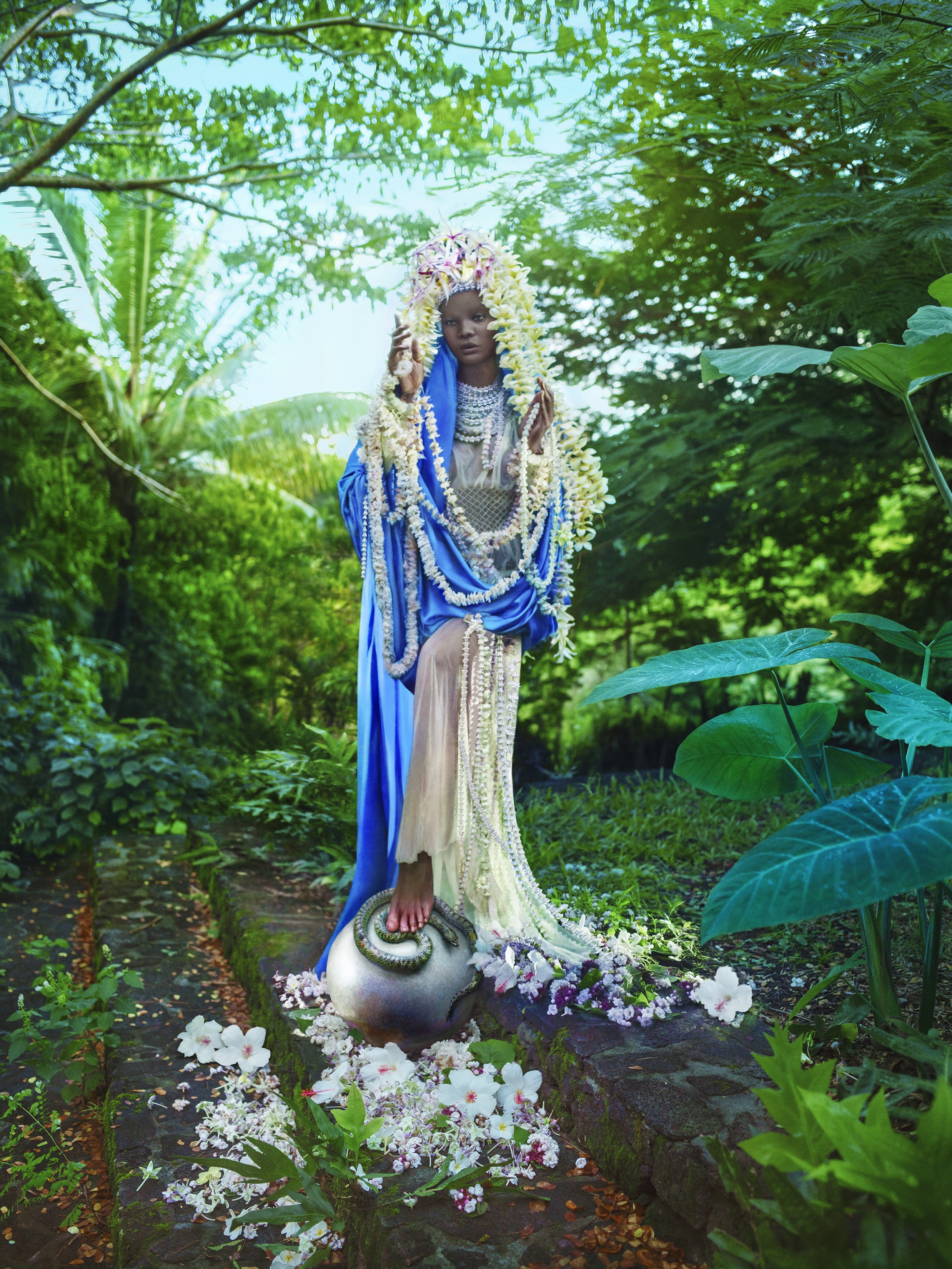 Nelle sue complesse scenografie surreali, dove non mancano provocazioni così come chiari riferimenti all’arte classica, confluiscono spiritualità e mondanità, eros e natura, sfarzo ed ironia, dando vita a un nuovo linguaggio fotografico e una nuova forma d’arte.