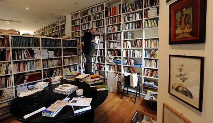 La biblioteca privata di Umberto Eco era un mondo a sé: più di 30 mila volumi di titoli contemporanei e 1500 libri rari e antichi.