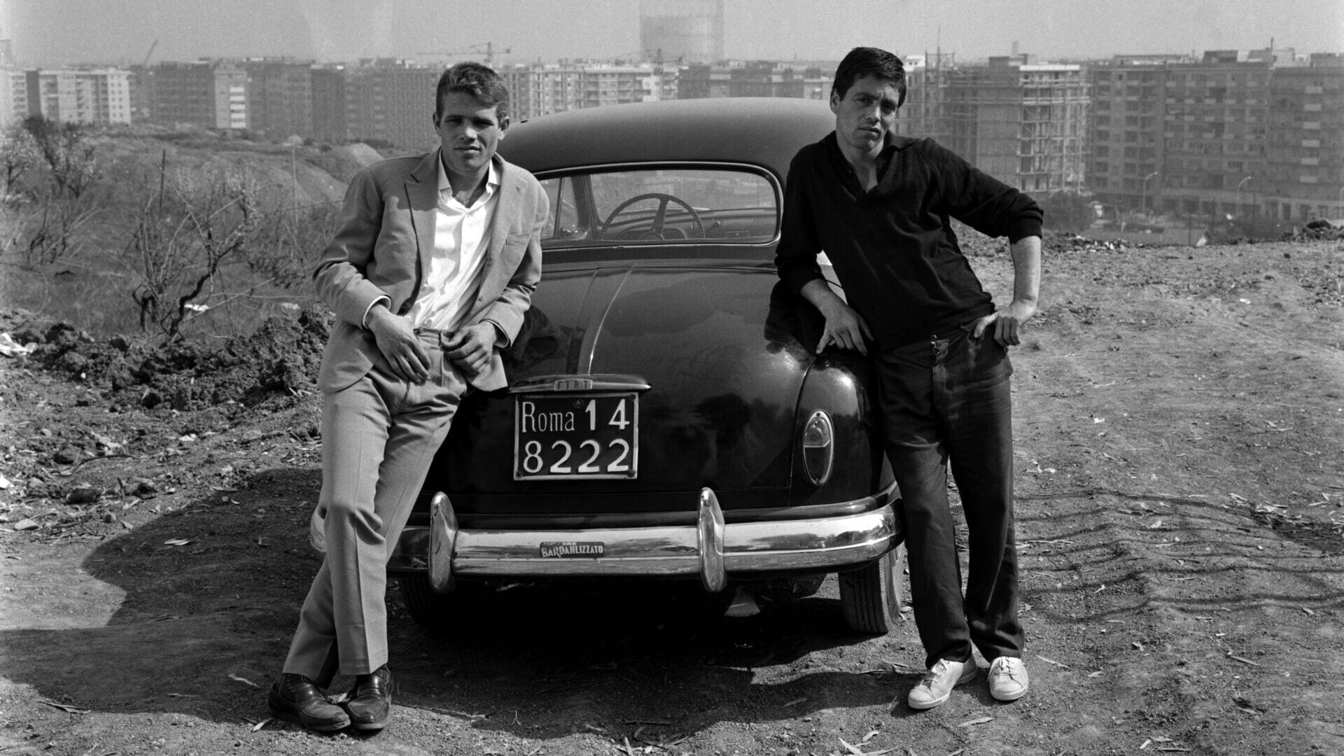 Piero Morgia e Franco Citti in "Accattone" (Pier Paolo Pasolini, 1961 ). Sullo sfondo, il quartiere Ostiense e il Gazometro Foto di Angelo Pennoni / Fondo Iannarelli / © Archivio Fotografico Cineteca Nazionale – CSC