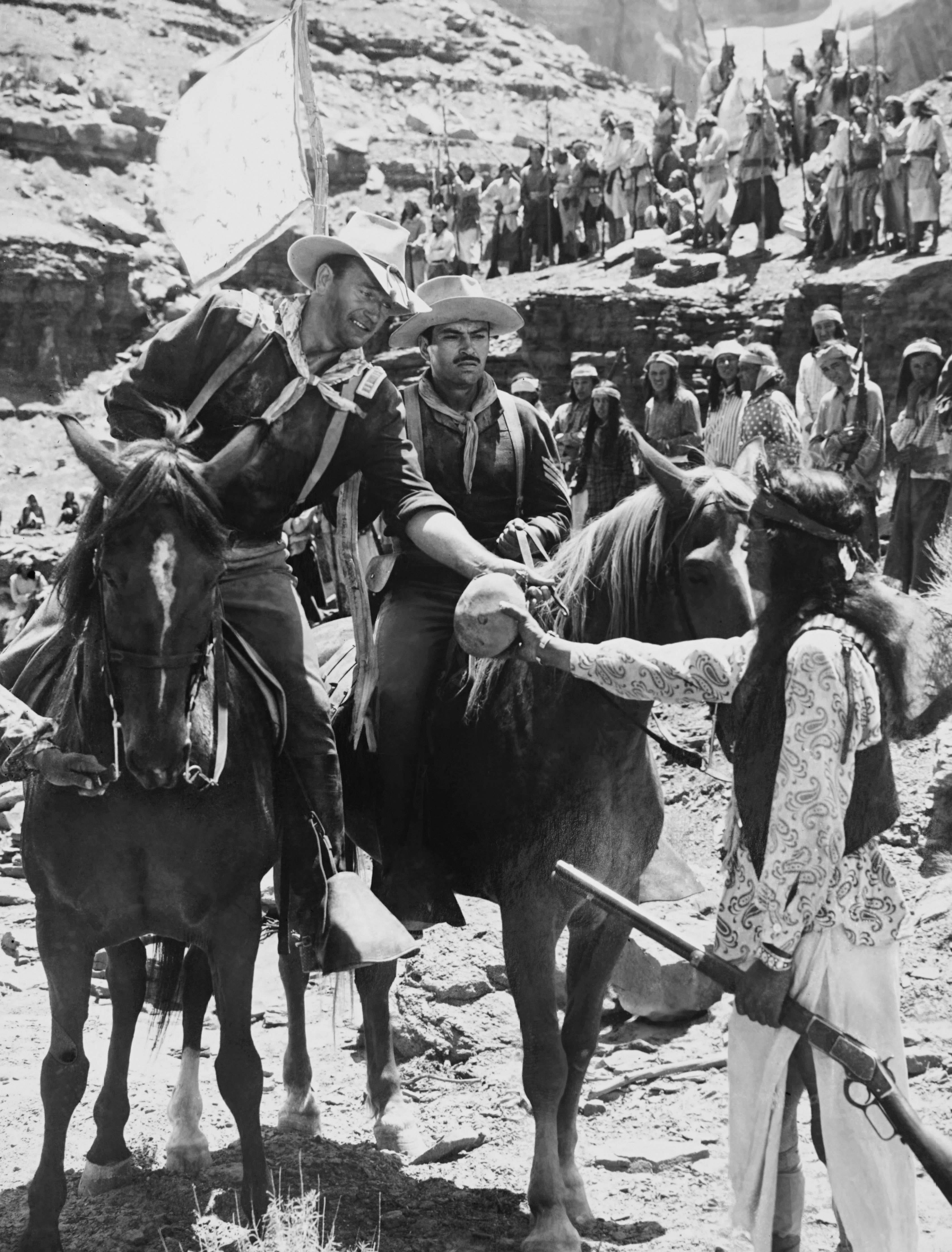 Ma fu sotto la direzione dell’amico John Ford che l’attore interpretò i suoi ruoli più celebri, a partire da Ringo Kid di Ombre Rosse nel 1939. Con il regista irlandese Duke girò ben 20 pellicole in un lasso di tempo di 35 anni e diventò uno dei divi più amati di Hollywood.