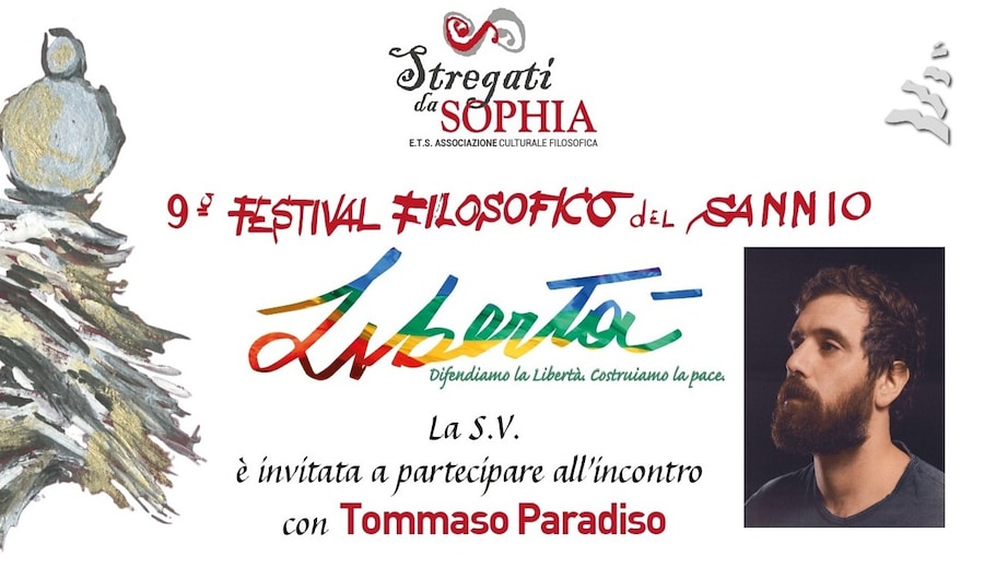 Da cantautore a filosofo, Tommaso Paradiso, ex frontman del gruppo musicale pop italiano Thegiornalisti, il 9 maggio 2023 al Teatro San Marco di Benevento (ore 16,30) sarà protagonista dell'incontro conclusivo del 9°Festival Filosofico del Sannio, incentrato quest'anno sul tema Libertà. La manifestazione è stata seguita da studenti e studentesse provenienti da diciotto licei di Benevento e provincia, dalla provincia di Avellino, di Foggia e di Napoli per un totale di più di mille ragazzi, accompagnati da docenti e da appassionati del tema. Con il famoso cantautore, molto amato dai giovani, si analizzerà il rapporto tra musica e filosofia e il concetto di libertà di pensiero.