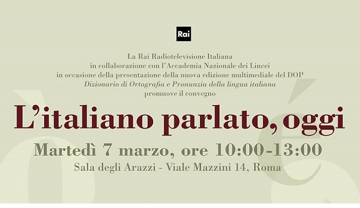 Martedì 7 marzo, dalle 10.00 alle 13.00, presso la Sala Arazzi di Viale Mazzini 14 – Roma, la Rai Radiotelevisione Italiana, in collaborazione con l’Accademia Nazionale dei Lincei, in occasione della presentazione della nuova edizione multimediale del DOP, Dizionario di Ortografia e Pronunzia della lingua italiana, promuove il convegno L’italiano parlato, oggi.