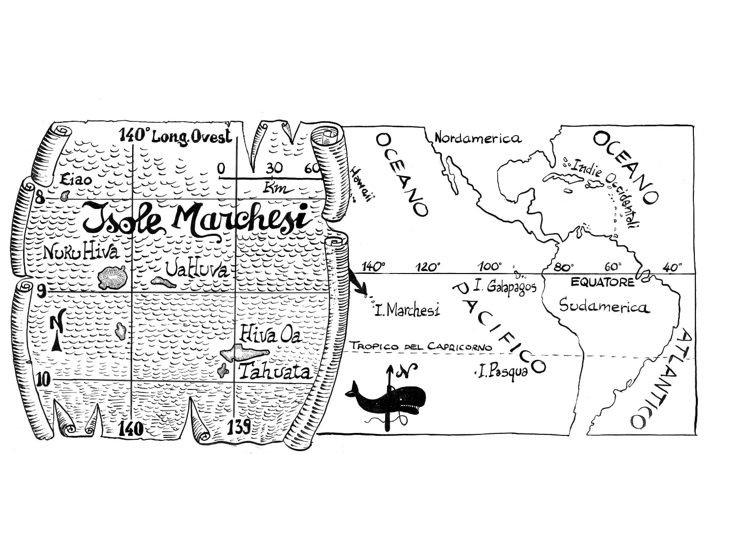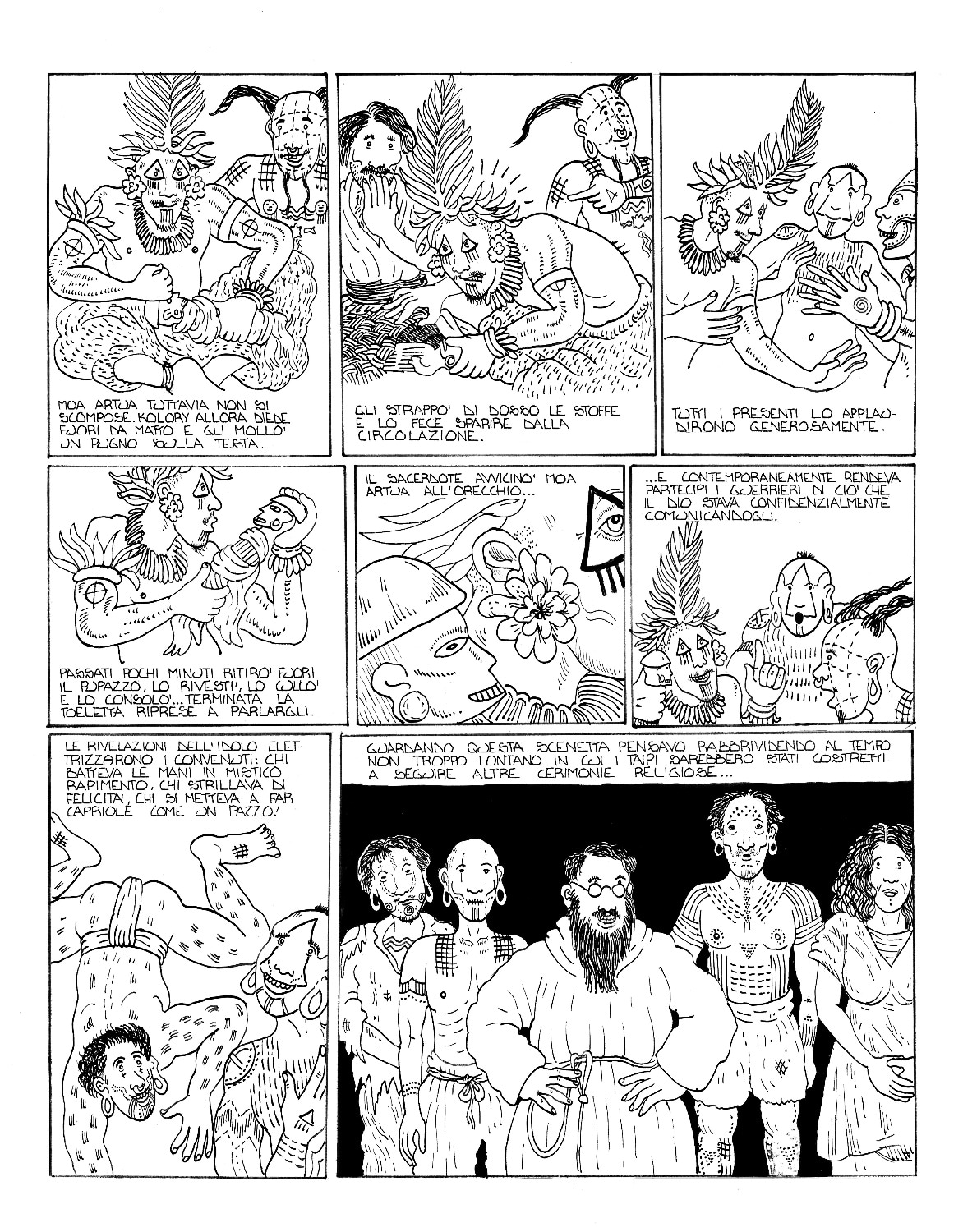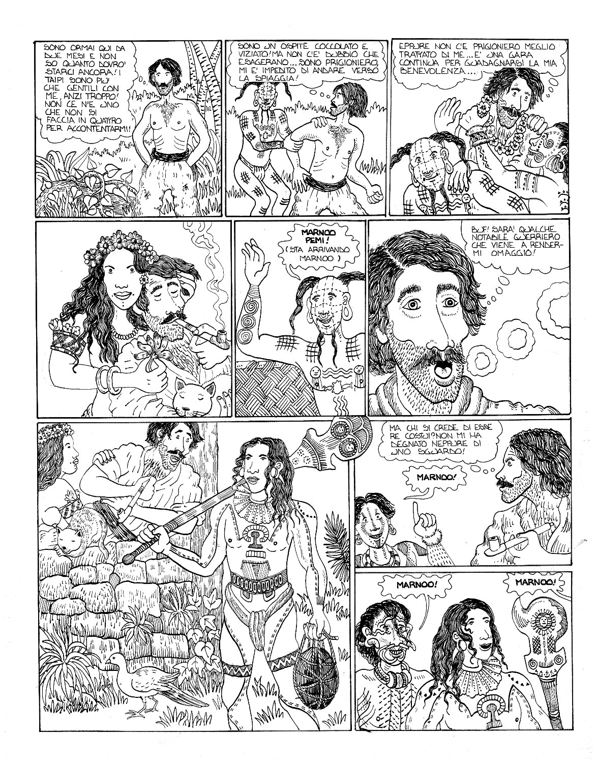 Il fumetto è uno splendido lavoro di sceneggiatura e illustrazione che ComicOut ha il merito di aver ripubblicato: disegni ispiratissimi nati non solo dall'evidente folgorazione dell’autore per questa storia, ma anche da un vasto studio storico e iconografico, raccontato da Guarnaccia nella premessa al volume. E se da una parte le illustrazioni rappresentano perfettamente lo stile dell'autore, dall'altra riescono sia a rievocare l’arte primitiva polinesiana e la cultura dei tatuaggi marinareschi, sia soprattutto lo stile narrativo dello stesso Melville, che si ritrova ad ogni tavola: nella costruzione sempre più intrigante dei personaggi così come nel susseguirsi sempre più avvincente degli eventi; nei puntuali elenchi di cetacei e specie vegetali dell'isola così come nelle descrizioni minuziose degli strumenti, delle imbarcazioni e dei riti degli indigeni che, alternandosi alla vicenda dei due fuggiaschi, invece di rallentare il ritmo vivacizzano la lettura e fanno respirare quel tipico stile melvilliano, incredibilmente capace di suscitare senso di meraviglia e curiosità al contempo per storia e personaggi così come per i dettagli più minuziosi dell’arte della baleniera, ancora oggi a più di 150 anni dalla prima pubblicazione, avvenuta nel 1856. Un talento di Melville che sarà poi sviluppato e portato al suo massimo apice nel capolavoro Moby Dick.