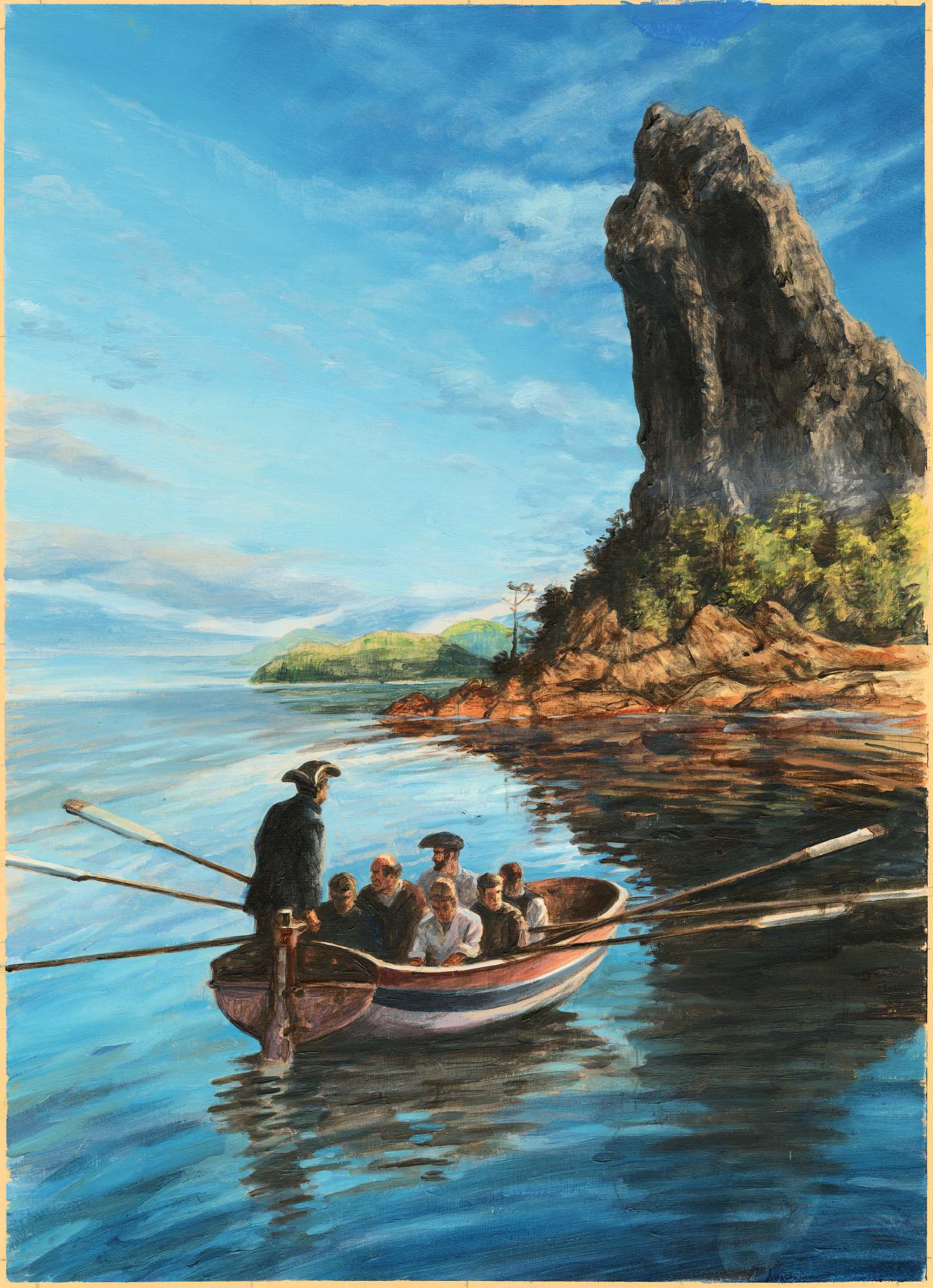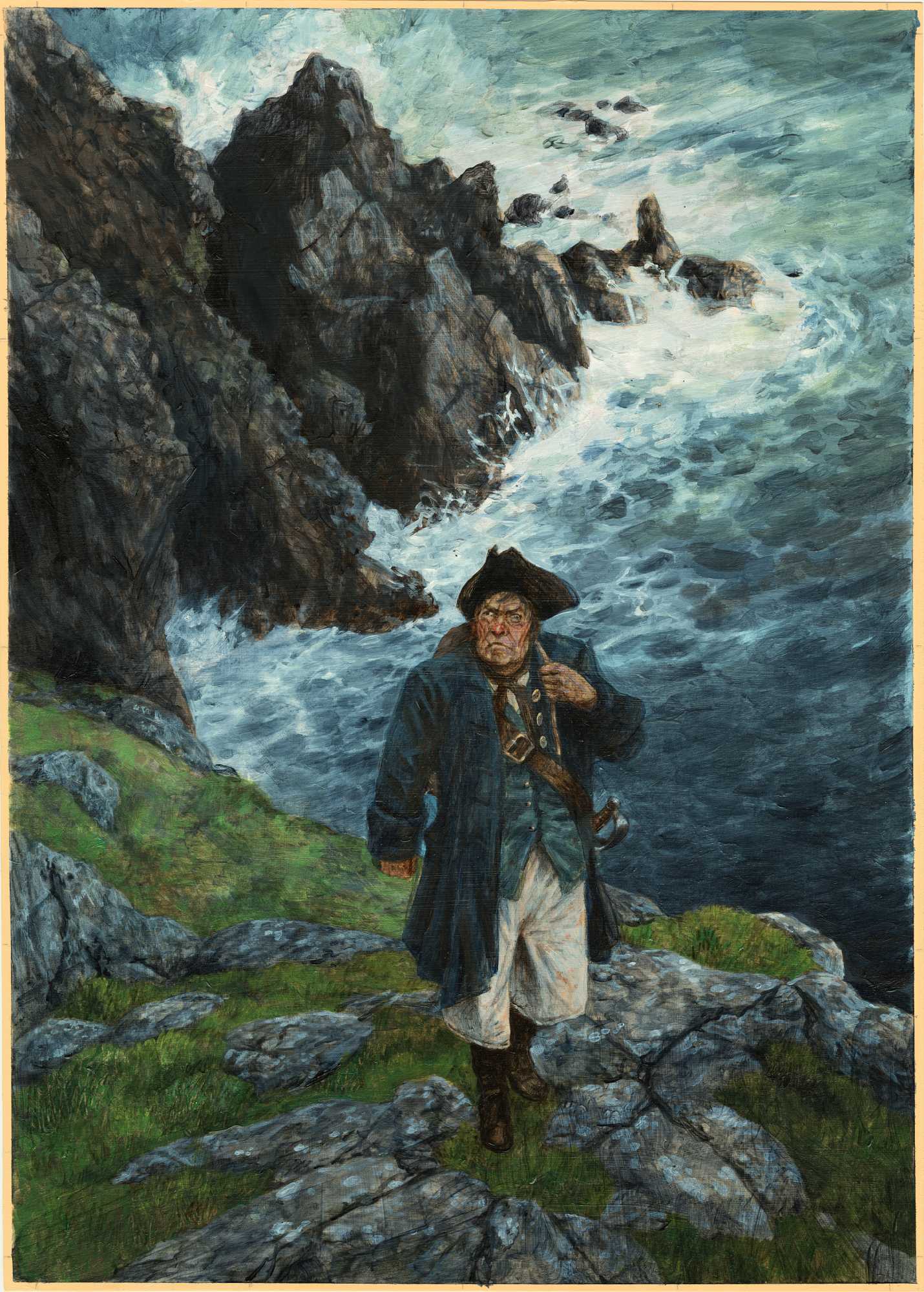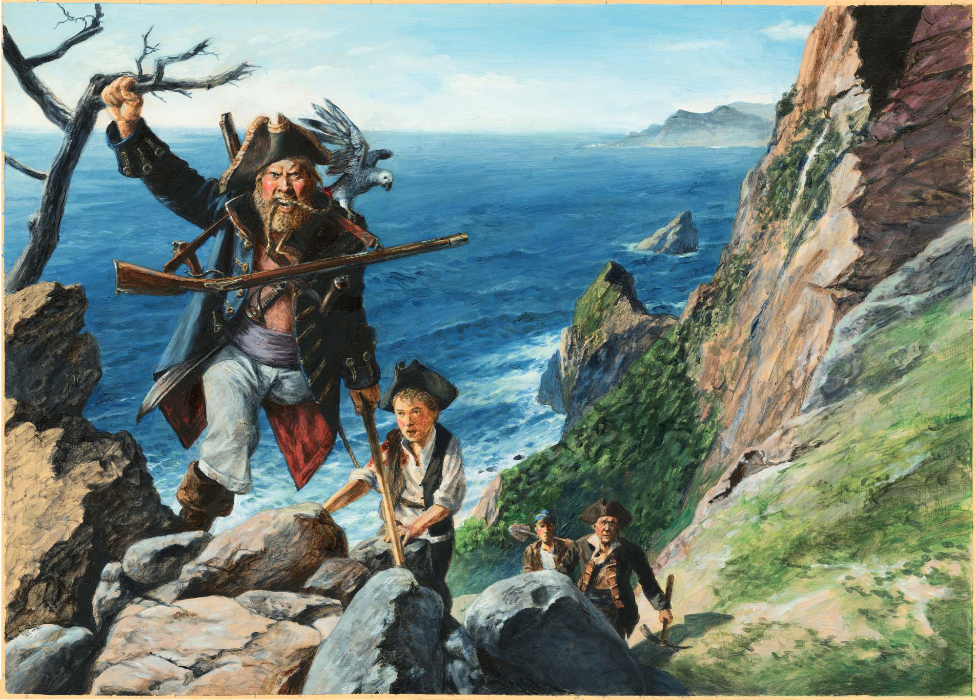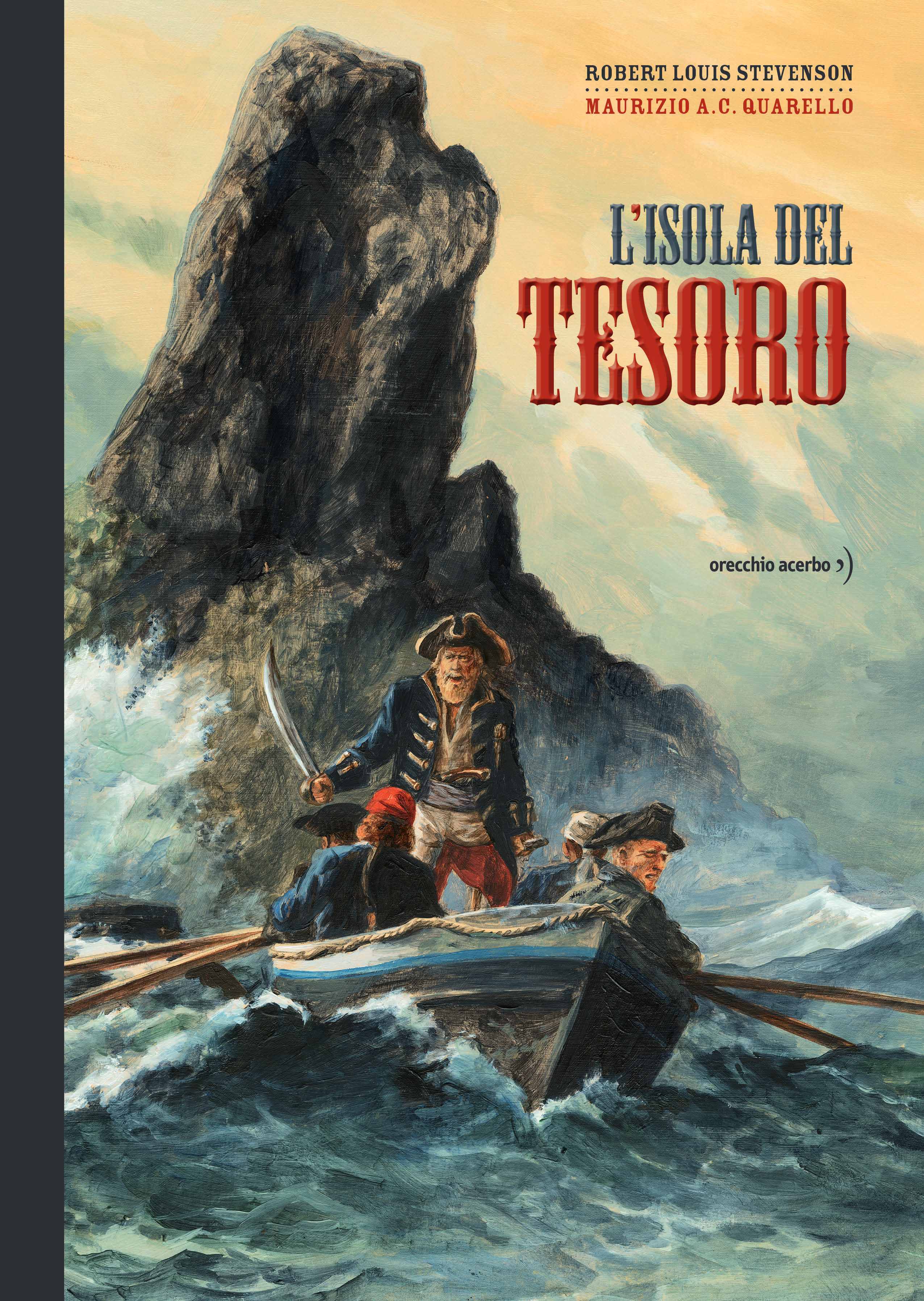 Per gentile concessione dell’editore Orecchio Acerbo pubblichiamo in anteprima in questa fotogallery alcune delle splendide illustrazioni contenute nel volume.Mi bastò ascoltare dieci parole, che per tutto l’oro del mondo non sarei più uscito. E rimasi lì, tutto tremante, in ascolto, tra curiosità e spavento poiché da quelle poche parole avevo capito che la vita di tutti gli uomini onesti a bordo dipendeva unicamente da me. – L’isola del Tesoro di R. L. Stevenson, incipit, traduzione di Angiolo Silvio Novaro.
