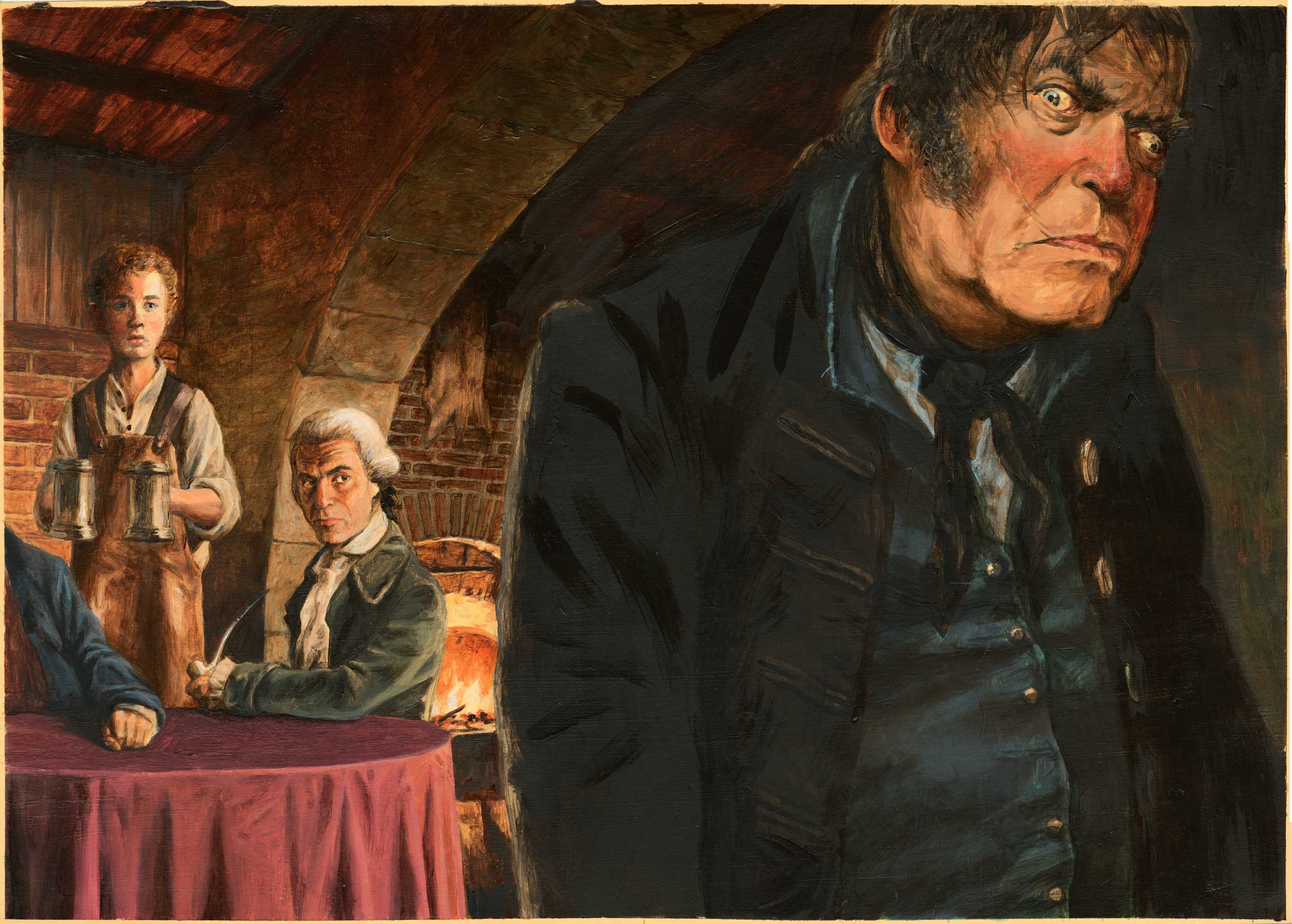 Quella che vi segnaliamo è una nuova edizione a cura di Orecchio Acerbo di questo gioiello letterario, decisamente impreziosita dalle pennellate di uno dei giganti dell’illustrazione italiana e internazionale, Maurizio Quarello, che già si era cimentato (sempre per Orecchio Acerbo e sempre con notevoli risultati) nell’illustrare un altro lavoro del grande Stevenson, e cioè il racconto del 1881 Janet la storta. La maestria di Quarello, che anche qui si conferma in mirabile armonia con l'autore de L'Isola del Tesoro, è quella di saper rendere, attraverso un sapiente uso del colore e dei contrasti tra luci ed ombre, il conflitto tra il bene e il male, non solo nella raffigurazione della natura, madre e matrigna, accogliente come implacabile, ma anche e anzi soprattutto in uno stesso personaggio. Le illustrazioni di Quarello contribuiscono così in totale complicità con la penna del maestro Stevenson a catapultare il lettore in mezzo alla storia, pagina dopo pagina, illustrazione dopo illustrazione, come se davvero facesse parte di quella scalcagnata ciurma alla ricerca di un fantomatico tesoro in un viaggio irto di pericoli, dove fino all’ultimo non si potrà sapere di chi davvero ci si può fidare... Altra particolarità di questa edizione la cura dei dettagli, come in apertura i ritratti a matita di tutti i personaggi della storia su sfondo ocra, a restituire un'impressione di antica pergamena, di mappa del tesoro ingiallita dal tempo e lisa da chissà quali eventi, e i simbolici disegni ad apertura di ogni capitolo.