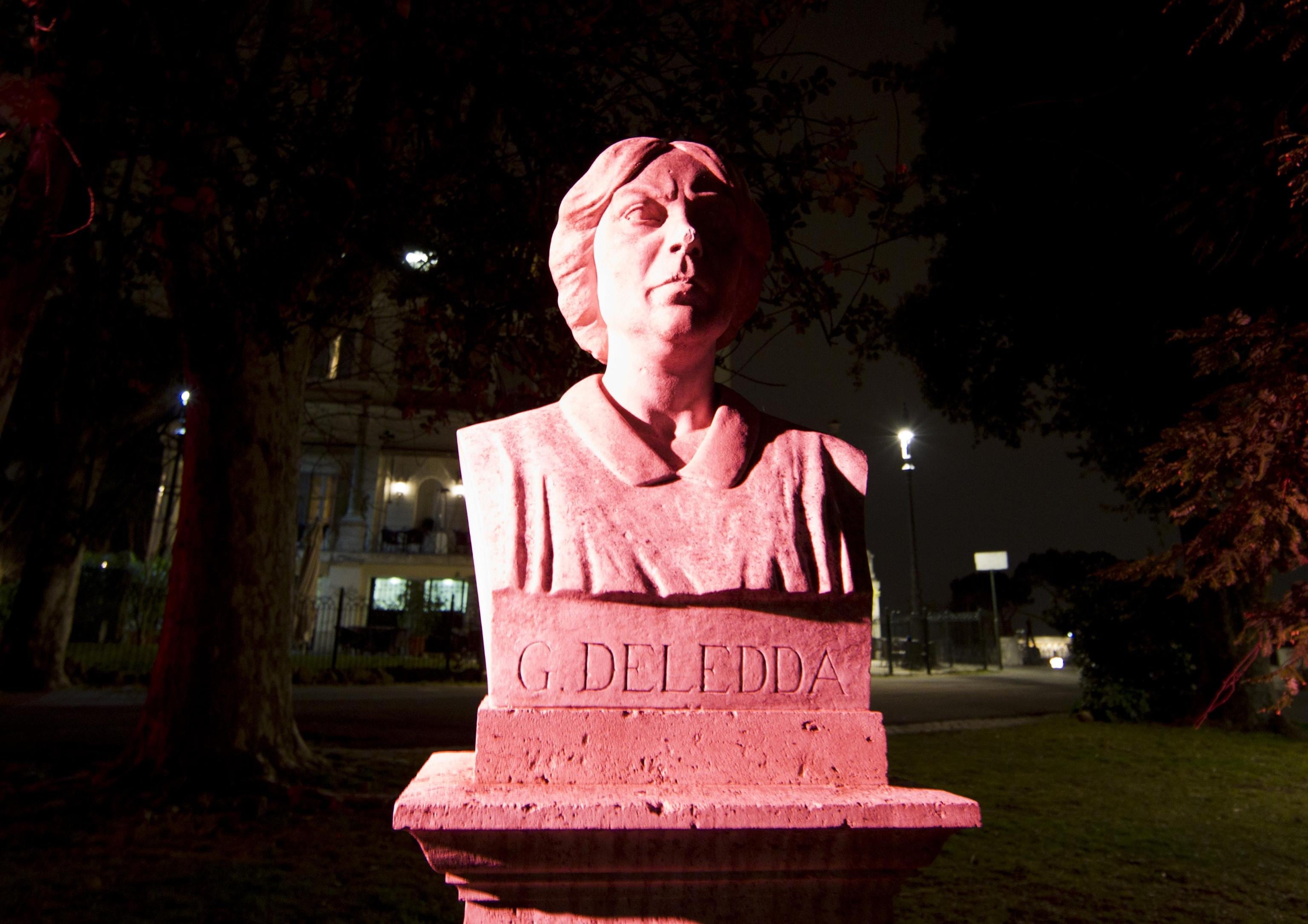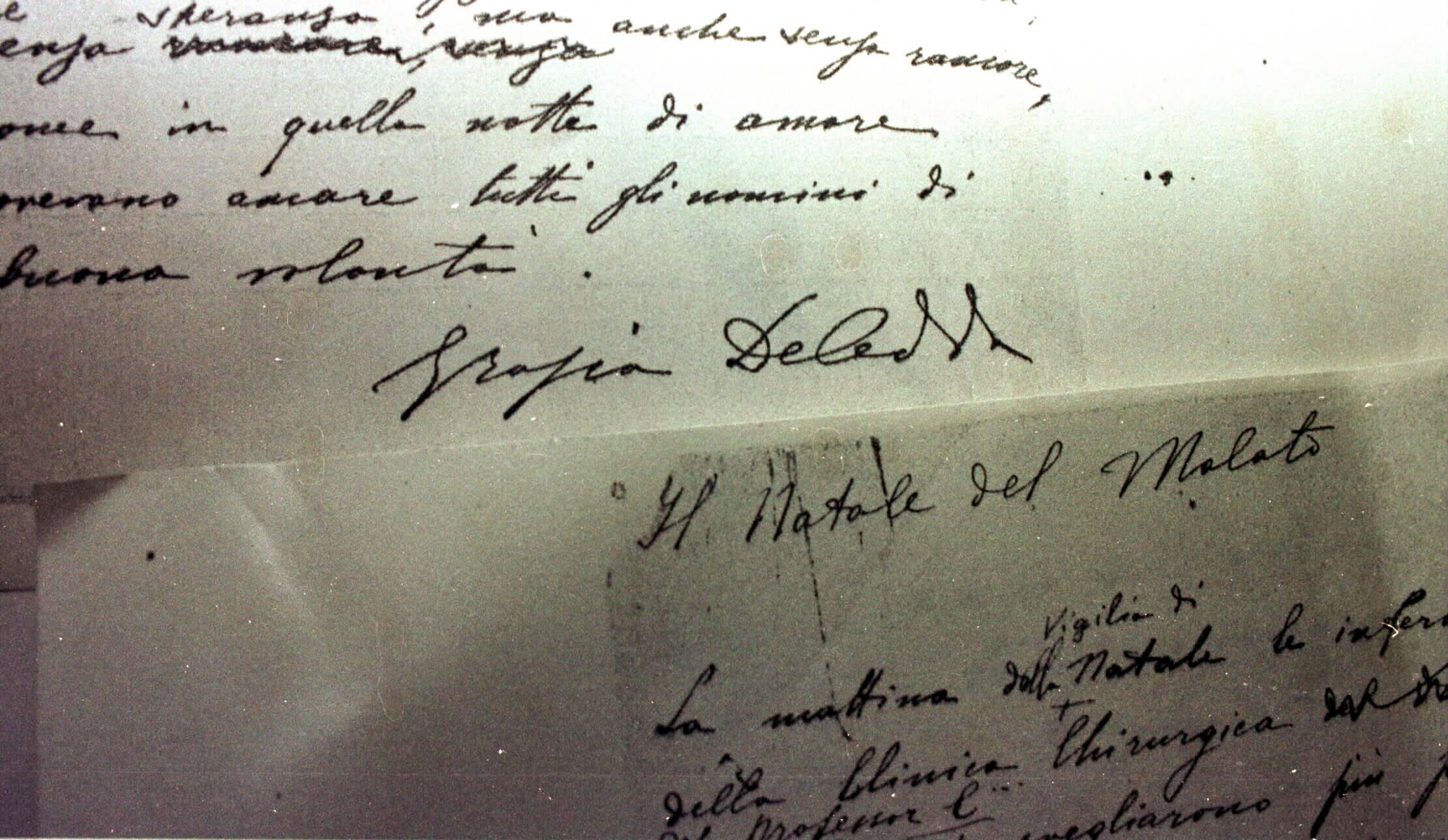 Grazia Deledda nasce a Nuoro il 27 settembre 1871. Frequenta solo le scuole elementari, ma l’ambiente familiare nel quale cresce le consente di studiare l’italiano, il francese e di coltivare i suoi interessi per la cultura. Appassionata lettrice, da giovane inizia a scrivere racconti. Nel 1900 si trasferisce a Roma dove risiederà sino alla morte. A 21 anni pubblica il suo primo romanzo Fior di Sardegna. Nel 1913 esce il suo capolavoro, Canne al vento, in cui pone al centro la fragilità dell'individuo travolto da un destino cieco e crudele. Nel 1926, seconda donna nella cronologia del premio, vince il Nobel per la letteratura. Il suo romanzo autobiografico, Cosima, esce nel 1937, un anno dopo la sua morte.