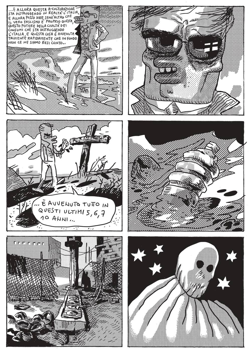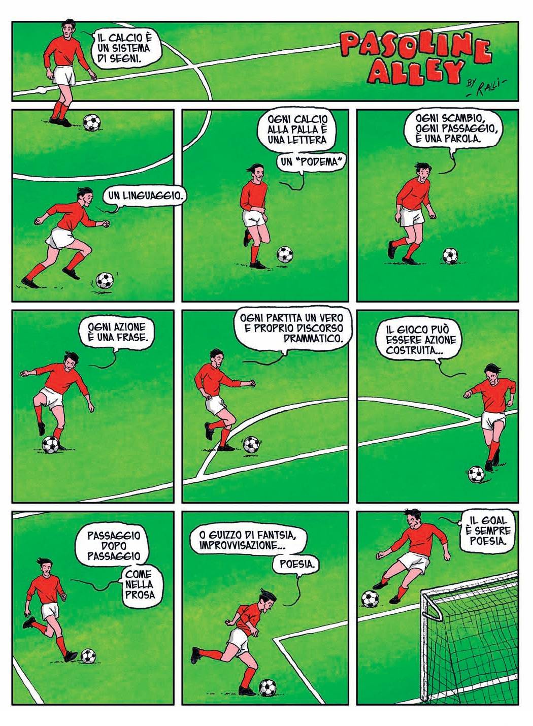 Pier Paolo Pasolini ha detto, con la voce o con la penna, troppo e mai abbastanza, articolando contraddizioni, registrando catastrofi, spargendo poesie come fossero comizi, romanzi come teoremi, saggi come preghiere. Dire: necessità e tormento. Il più santo dei suoi personaggi, Assurdina, è muto. [...] Nelle pagine di questa rivista immaginaria [...] insieme al dire, di PPP c’è anche il guardare. Perché ci sono i disegni, ovvio, e i fumetti, vale a dire l’arte in cui i silenzi e le parole si confondono. – Luca Ralli