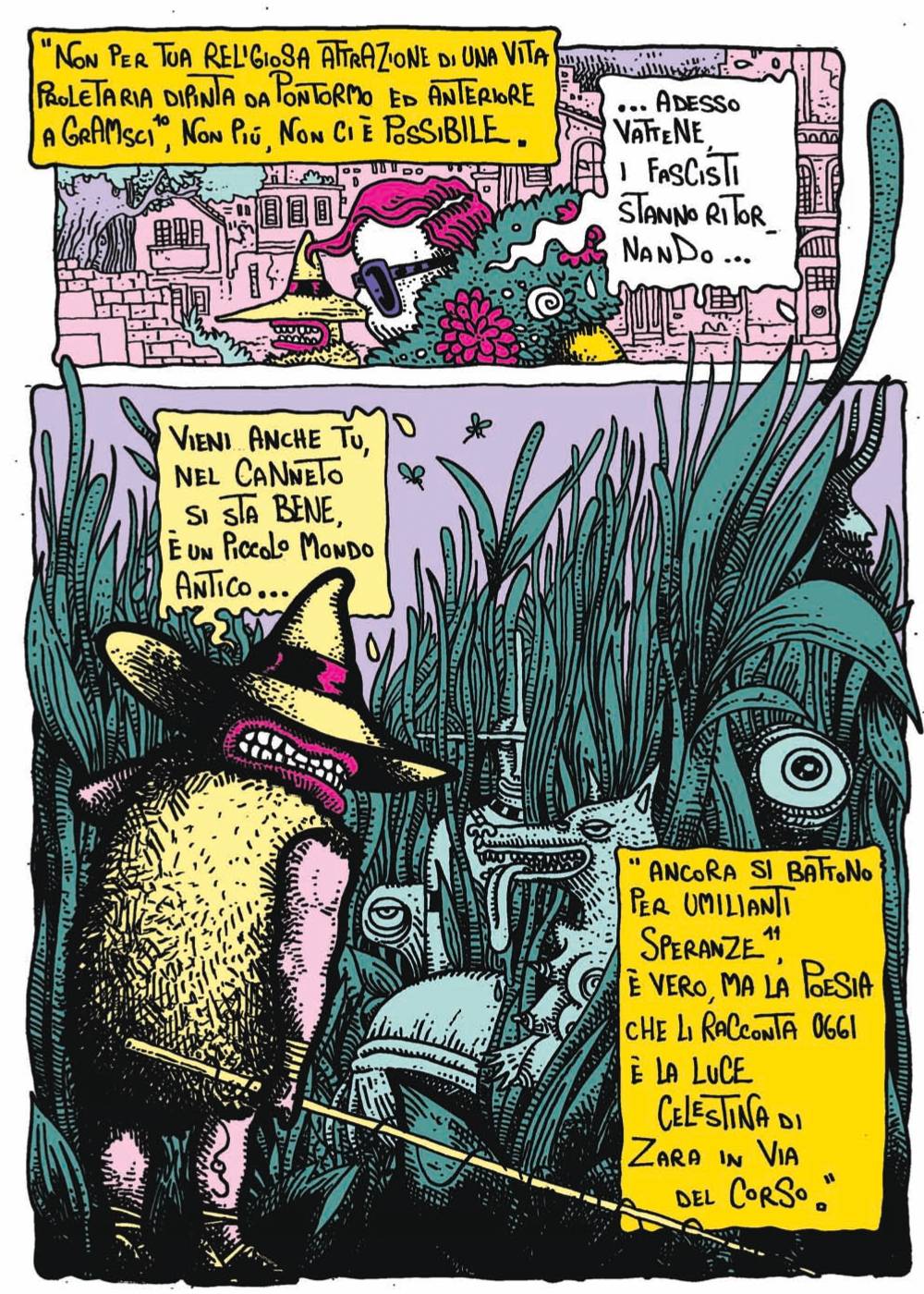 Ma in questo bellissimo lavoro, omaggio collettivo a uno dei più preziosi artisti e intellettuali del Novecento, più che la descrizione possono le immagini, vi rimandiamo pertanto a questa fotogallery in cui pubblichiamo in anteprima per Rai Cultura e per gentile concessione dell’editore Barta, alcune tavole contenute nel volume.