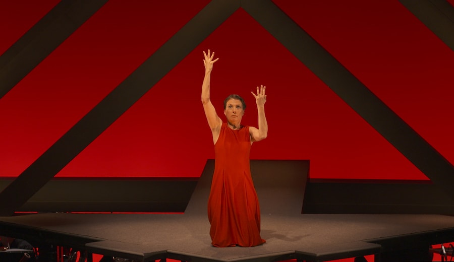 Il mimo-danzatore, Roberta Gottardi, canta con le dita, le mani, le braccia. Il suo gesto è musicale in sé. I vari gesti sono tutti mutuali da posture devozionali delle diverse religioni praticate in tutto il globo.È tra le composizioni che meglio rappresentano due delle cifre estetiche di Stockhausen: l’attenzione alla spazialità della musica, grazie alla stretta relazione tra suono e gesto; l’esperienza totalizzante della musica come arte del tempo e dello spazio, dell’orecchio e dell’occhio, anche attraverso un’imponente architettura dalla durata estesa.