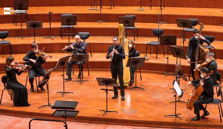 Protagonisti del concerto sono i professori della compagine Rai Luigi Arciuli (flauto), Salvatore Passalacqua (clarinetto), Constantin Beschieru (violino), Irene Cardo (violino), Federico Maria Fabbris (viola), Eduardo Dell’Oglio (violoncello), Vincenzo Venneri (contrabbasso) e Margherita Bassani (arpa).