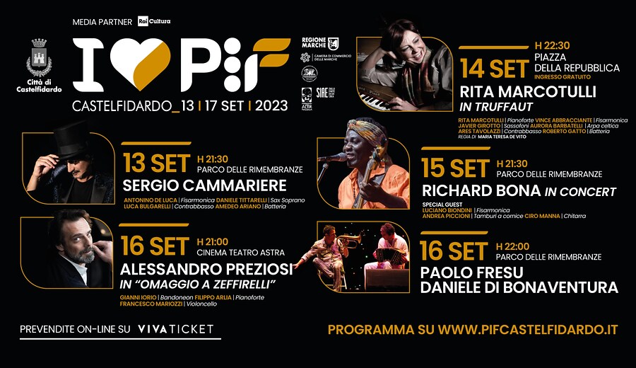 Patrocinato da Regione Marche e Camera di Commercio di Ancona, con il sostegno di Amma, Siae, Proloco, Accademia Astor Piazzolla e in Media Partnership con Rai Cultura.