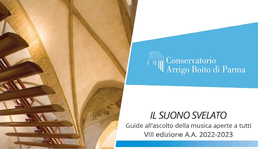 Prospettive insolite per guardare alla musica e scoprirne i meccanismi più nascosti: tornano le Guide all'ascolto aperte a tutti/e del Conservatorio di Musica "Arrigo Boito" di Parma. L’ottava edizione de Il suono Svelato si svolgerà dal 15 novembre al 20 dicembre 2022 con sei appuntamenti a ingresso libero e gratuito, tutti i martedì alle 18.00 nell'Auditorium del Carmine (Via Duse 1/a, Parma). Docenti e studenti del Conservatorio approfondiranno i temi più vari, dall'arrangiamento di uno standard jazz al rapporto tra la musica pop e i videogiochi, dalle Fantasie e Improvvisi nella musica per pianoforte alle canzoni dei Beatles.