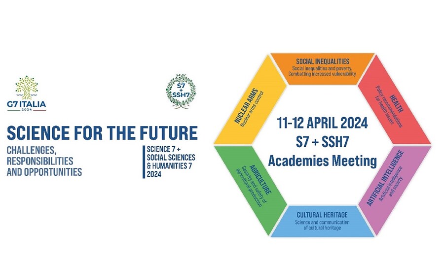 L’Accademia Nazionale dei Lincei ha ospitato l’11 e 12 aprile ’24 la riunione delle Accademie nazionali dei Paesi appartenenti al G7. L’iniziativa, avviata nel 2005 dalla Royal Society (accademia del Regno Unito) in occasione della presidenza britannica del summit, viene definita Science7 o S7. Lo scopo della riunione è quello di elaborare dei documenti congiunti (joint statements) su grandi temi di interesse globale da sottoporre ai Capi di Stato e di governo del G7.