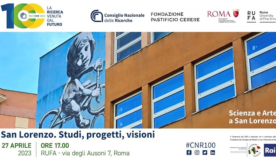 Promosso nell'ambito del progetto Scienza e Arte a San Lorenzo, in collaborazione con l’Assessorato alla Cultura e rapporti con le Università del Municipio II, la Fondazione Pastificio Cerere e la RUFA - Rome University of Fine Arts, il 27 aprile 2023 presso la sede della Rufa a Roma, quartiere San Lorenzo, si svolgerà l'evento San Lorenzo. Studi, progetti, visioni, promosso dal Consiglio Nazionale delle Ricerche nell'ambito dei festeggiamenti per il centesimo anniversario dell'ente.