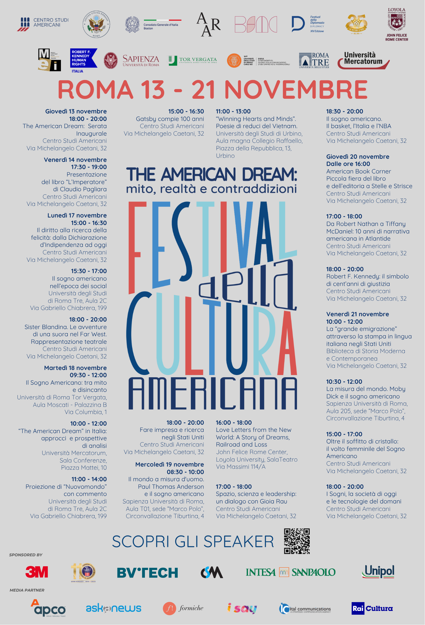 L’evento, nato dalla collaborazione tra il Centro Studi Americani e le principali università italiane e americane della Capitale, si concentrerà quest’anno sul tema del Sogno Americano.