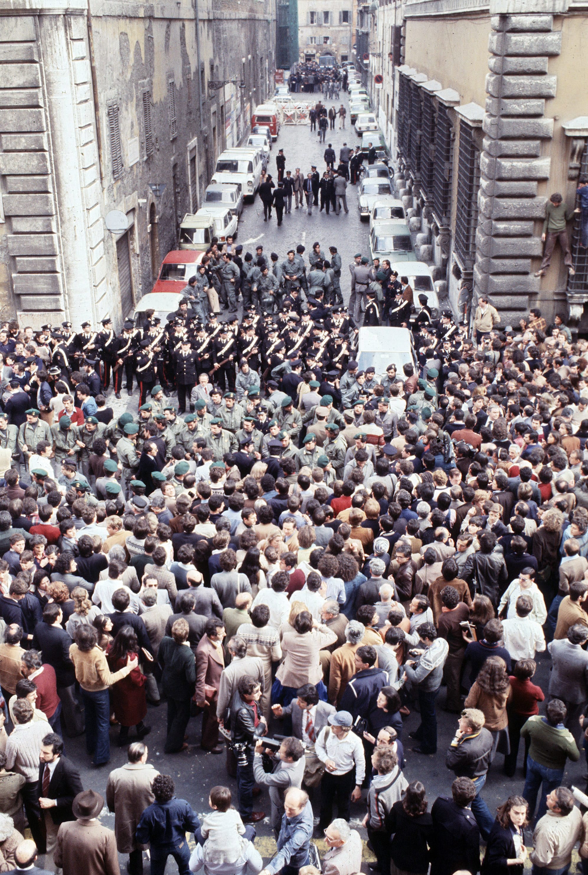Mercoledì 9 maggio 1978 in via Caetani, una strada del centro di Roma, nelle immediate vicinanze di via delle Botteghe Oscure, sede del Partito Comunista e piazza del Gesù, sede della Democrazia Cristiana, viene rinvenuto il cadavere dell’onorevole Aldo Moro, all’interno del bagagliaio di una Renault 4 rossa. Si chiude un calvario iniziato 55 giorni prima, il 16 marzo, quando il presidente della Democrazia Cristiana, viene sequestrato da un commando delle Brigate Rosse, in seguito all’uccisione dei cinque uomini della sua scorta. L’Italia intera si ferma per assistere a questo drammatico epilogo di una vicenda che lascia ancora oggi profonde ferite aperte. Ripercorriamo attraverso fotografie dell’epoca quei momenti concitati, che rimangono come ricordi indelebili per tutti gli italiani.