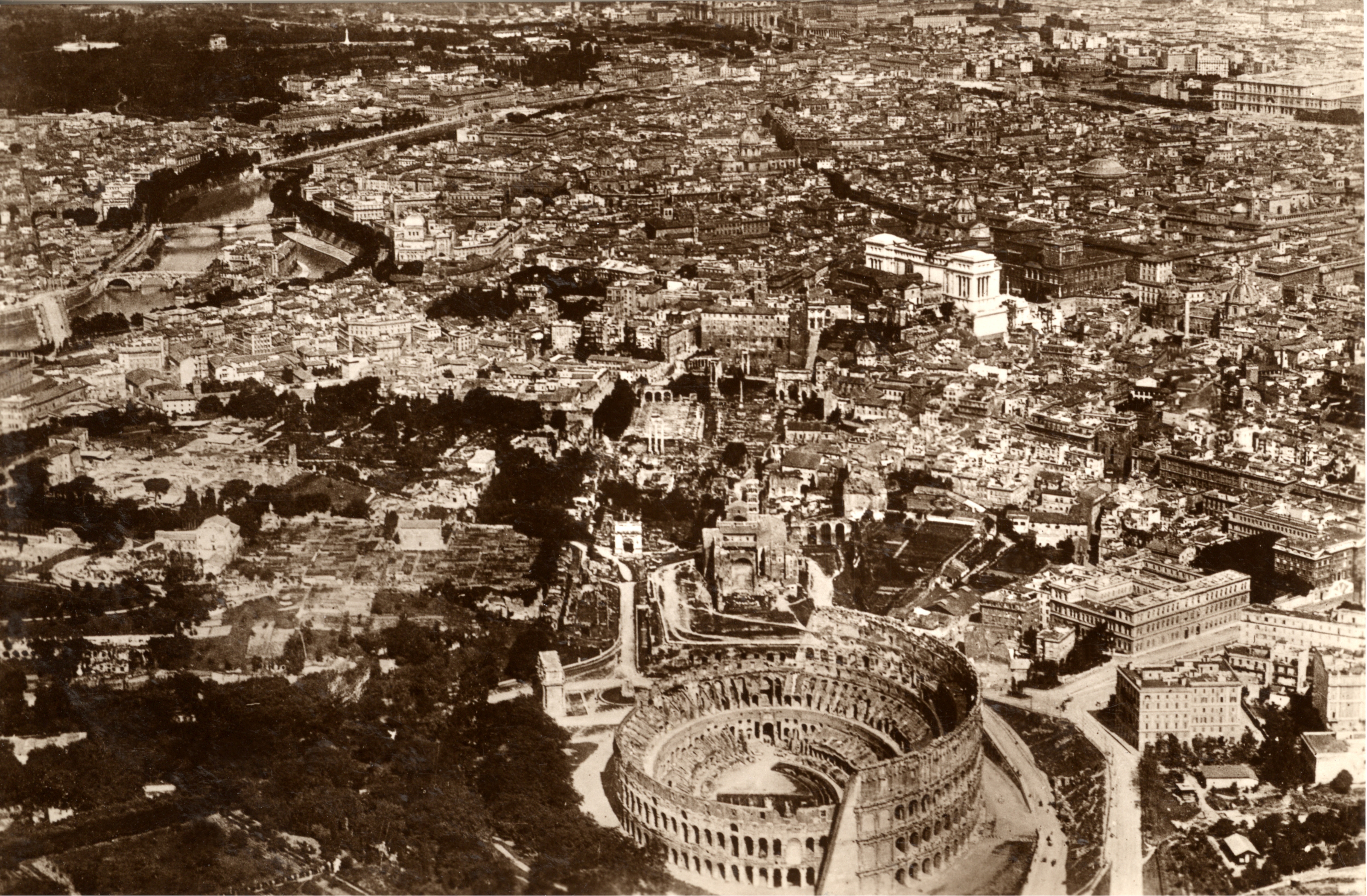 All’indomani del Concordato con la Chiesa, nel 1929, viene avviato l’intervento di distruzione dell’antico quartiere di Borgo Novo, per creare un collegamento tra San Pietro e il Tevere. Nel 1932 avviene l’inaugurazione del Foro Mussolini, l’attuale Foro italico, una delle strutture che meglio rappresenta lo stile architettonico del fascismo. Infine nel 1937 l’apertura del cantiere Eur 42, l’Esposizione universale per mostrare al mondo l’imponenza e la modernità della nuova Roma fascista. Come sostiene il Professore Emilio Gentile, autore dell’interessante libro “Il fascismo di pietra”, “chi attraversa oggi Roma dal Foro Italico fino all’Eur, assiste alla pietrificazione dell’ideologia fascista voluta da Mussolini durante gli anni del Regime. Non ci sono monumenti tra il 1925 e il 1940 che non siano stati segnati dall’esperienza fascista, per una Roma che sia capitale di un nuovo impero”.Da “città fredda e nemica”, nelle intenzioni di Mussolini, Roma deve diventare l’erede adeguata della grande città che era ai tempi dei romani