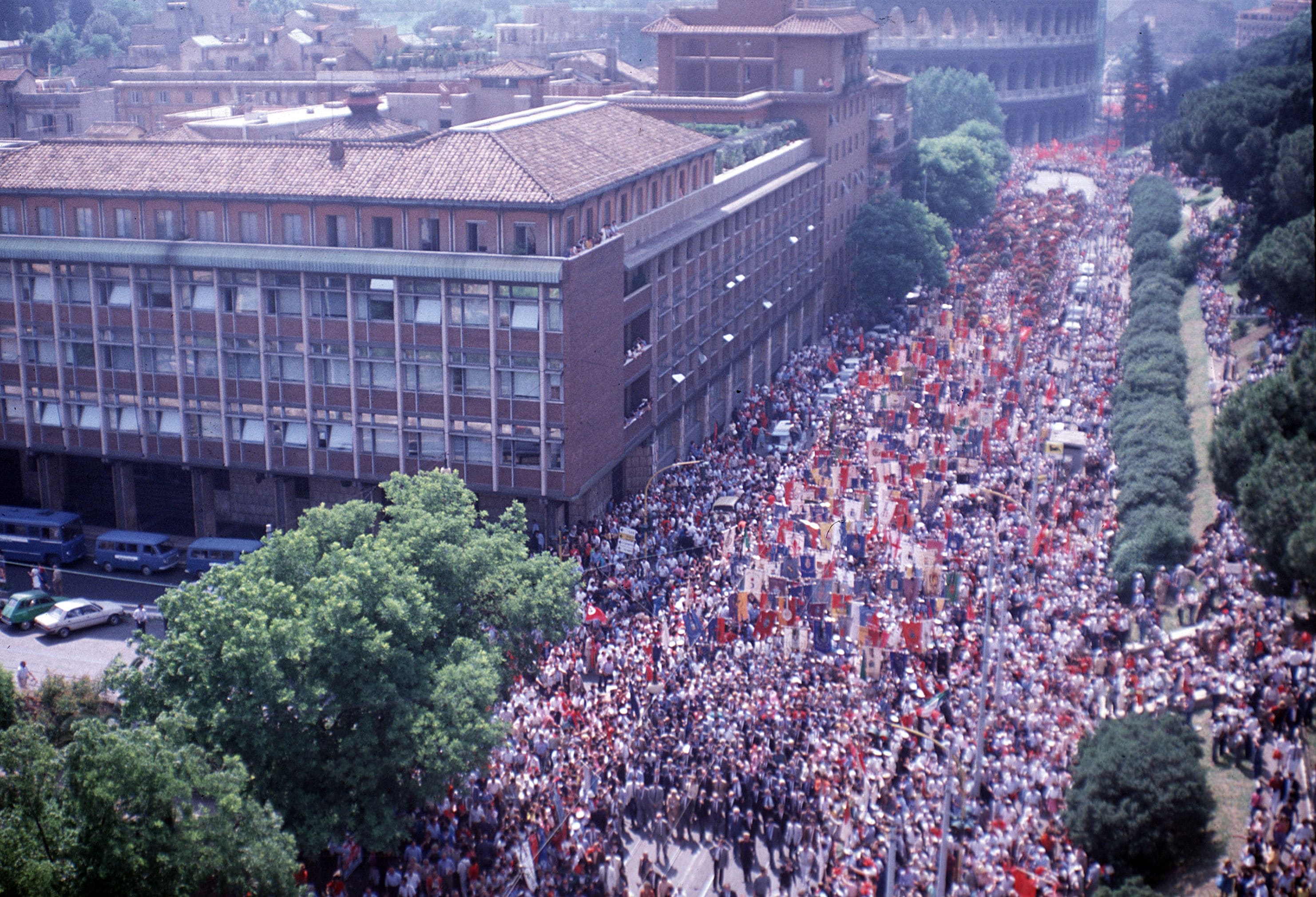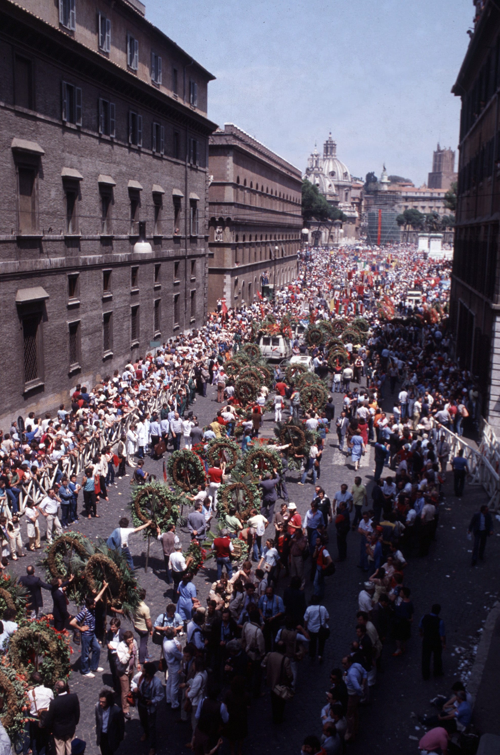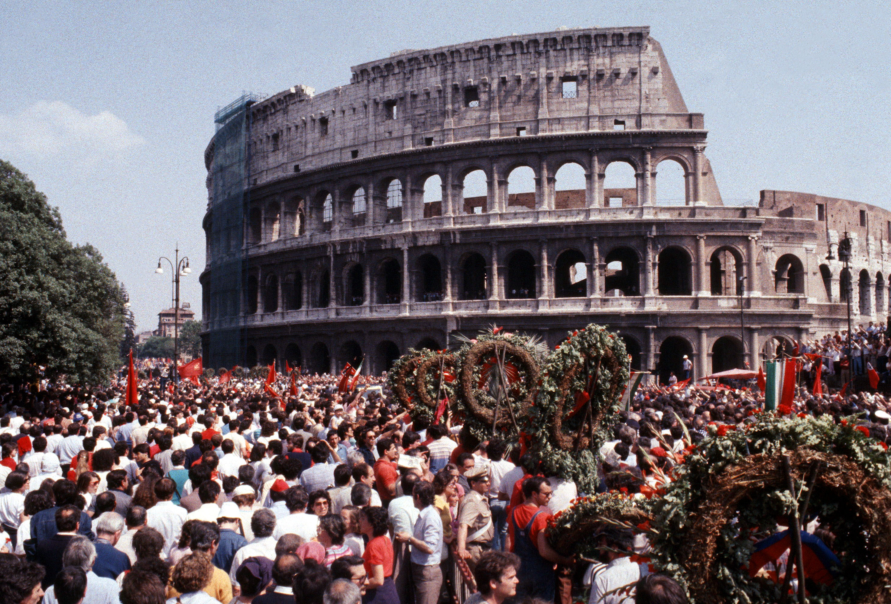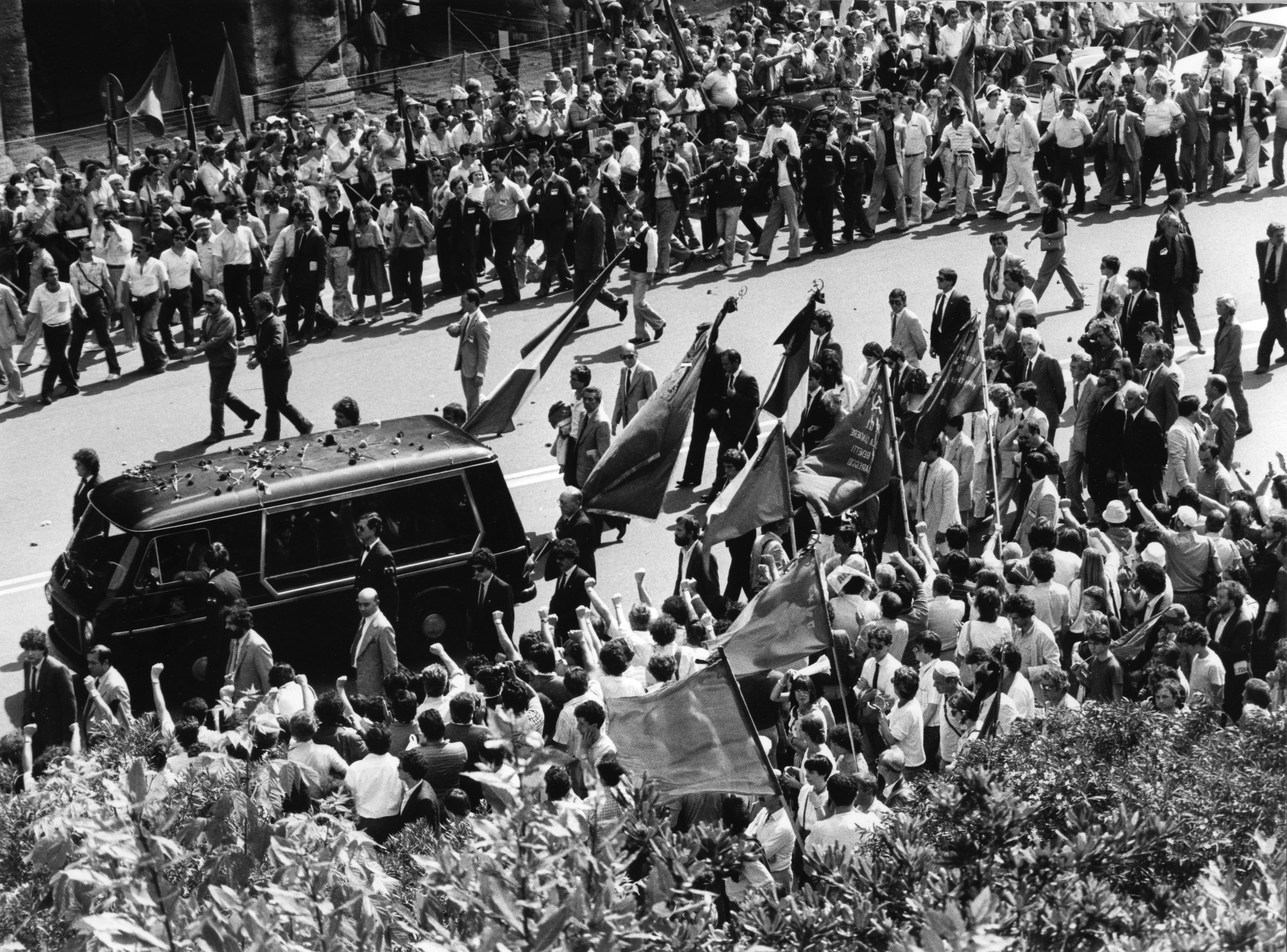 Sono presenti tutte le personalità politiche italiane e circa cinquanta delegazioni straniere, tra cui il premier cinese Ziyang, Michail Gorbaciov e Yasser Arafat. Ripercorriamo quei drammatici momenti attraverso le immagini dell'epoca da cui si nota l'immensa partecipazione popolare ad un vero e proprio dolore collettivo. Alla fine della giornata saranno circa 100 le persone colte da malore, tra cui anche una vittima per collasso cardiaco.