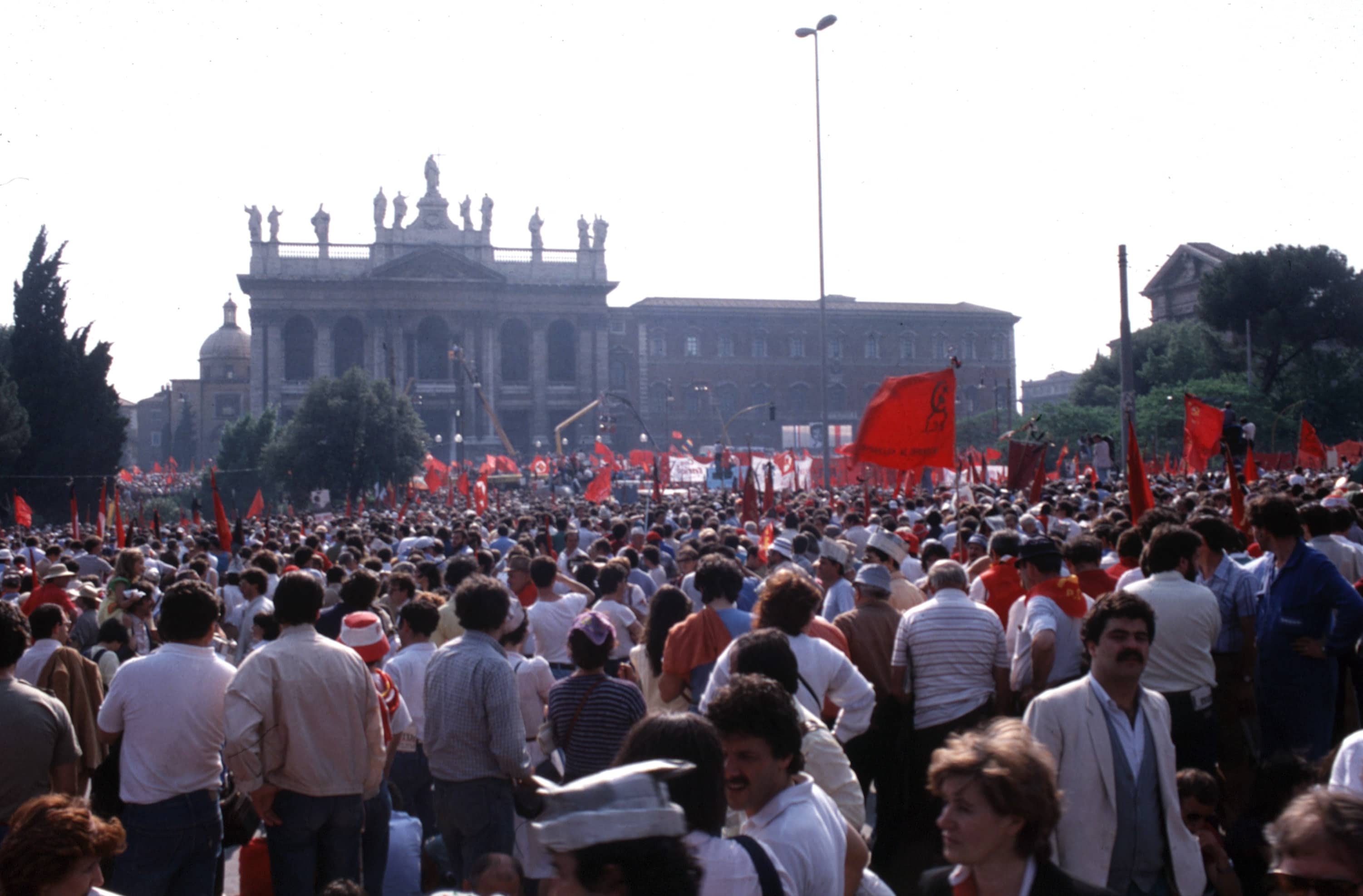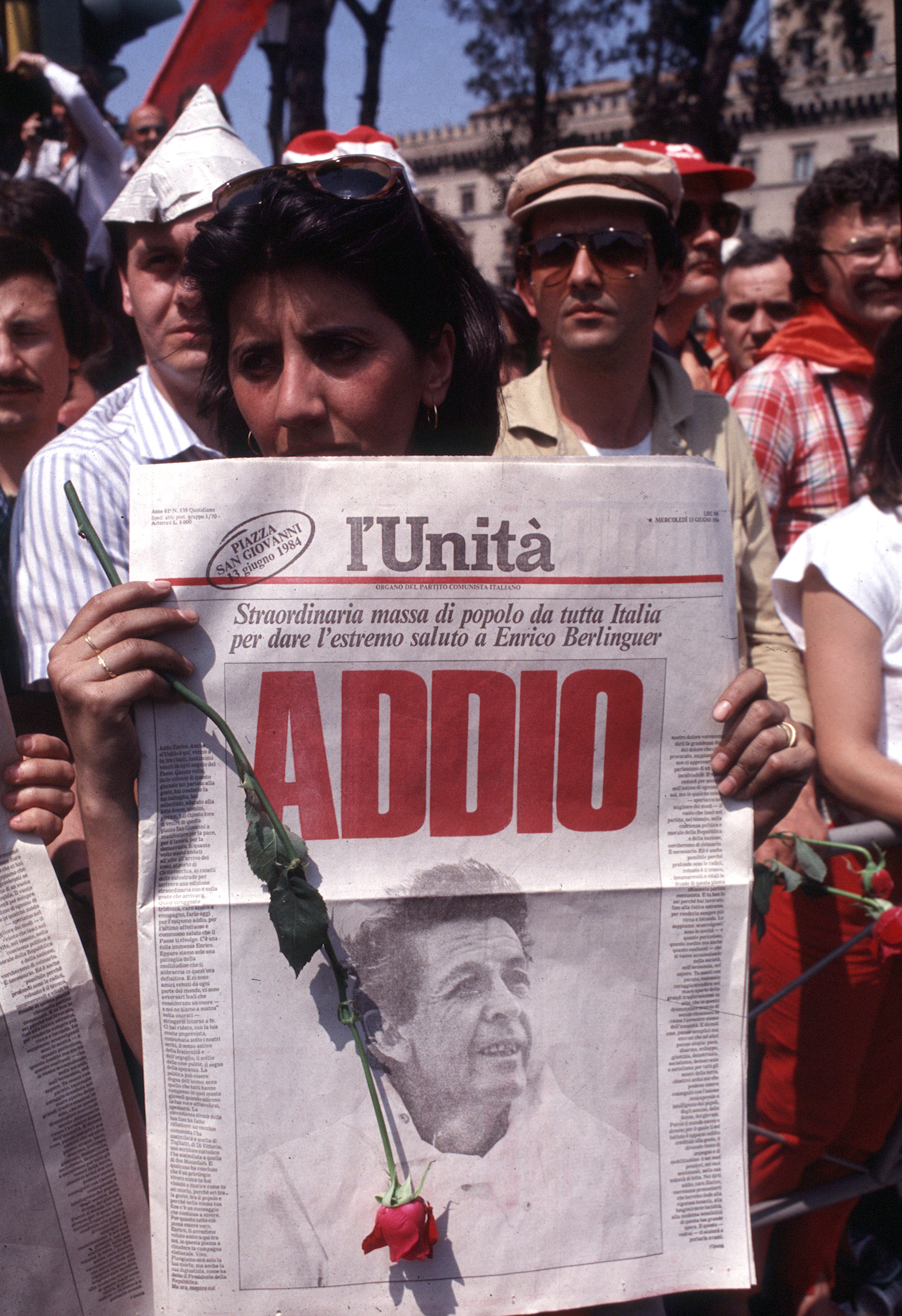 7 giugno 1984, durante il comizio di chiusura delle elezioni europee a Padova, il segretario del Partito Comunista italiano Enrico Berlinguer si trova sul palco per il suo intervento. A un certo punto inizia a perdere le forze, il respiro è affannato. Con fatica pronuncia le sue ultime parole con un fazzoletto bianco alla bocca prima di perdere conoscenza: "Compagni, proseguite il vostro lavoro...casa per casa...strada per strada...azienda per azienda, dialogando". Viene colpito da un ictus e quattro giorni dopo, l'11 giugno 1984, muore in ospedale all'età di sessantadue anni. Il feretro viene condotto a Roma dall'allora Presidente della Repubblica Sandro Pertini che lo piange da "amico fraterno, figlio e compagno di lotta".