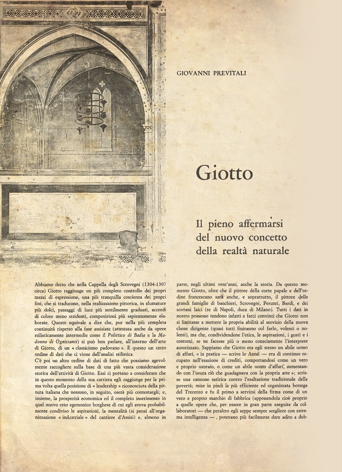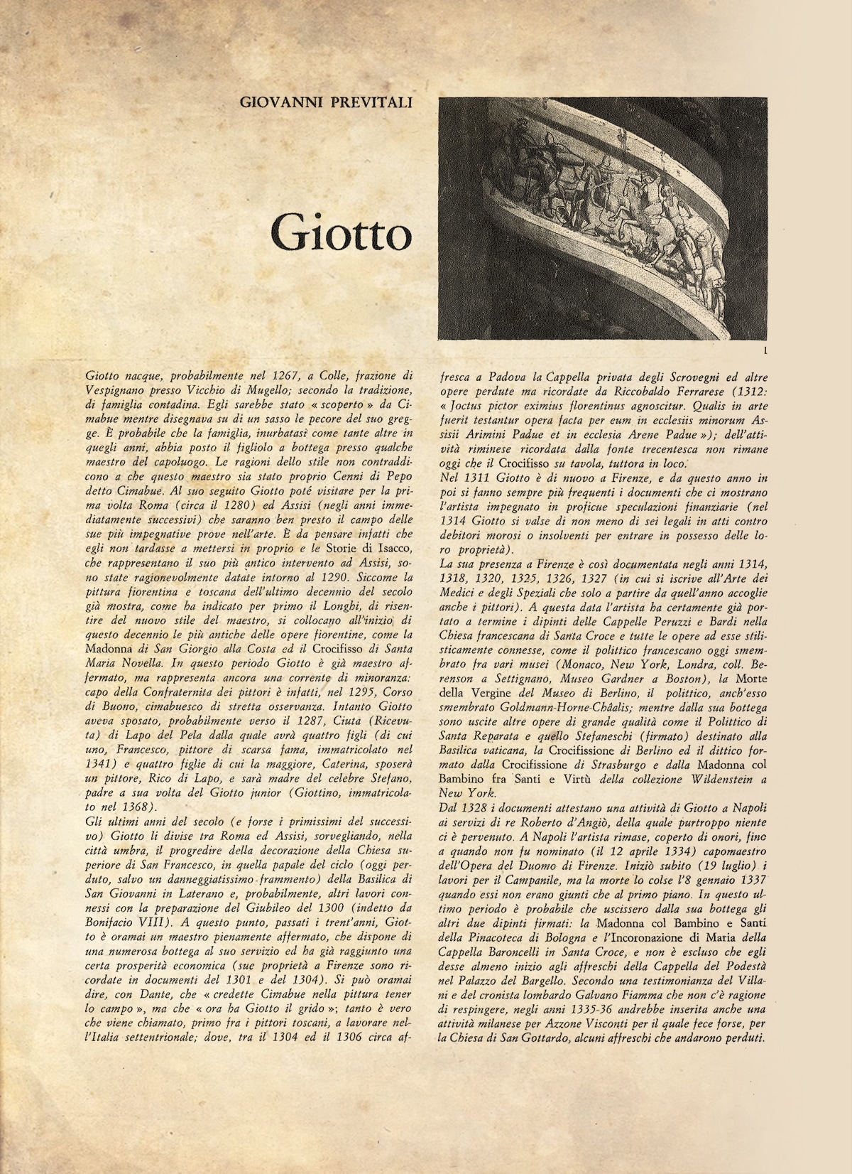 Si ringrazia L'Università degli Studi di Siena per la gentile concessione del saggio su Giotto di Previtali, all’epoca pubblicato nella serie, I Maestri del colore (1967).