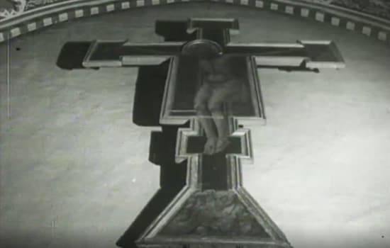 Philippe Daverio e Antonio Paolucci raccontano l’affermazione del mito di San Francesco (1181-1226), i grandi cambiamento sociali che resero il popolo protagonista del messaggio di fede e l'entrata in scena del giovane Giotto nella Basilica di Assisi. All’edificio sacro voluto da papa Gregorio IX nel 1228, seguirono i lavori di decoro iniziati nel 1260 con artisti gotici francesi. Nel 1288 circa, con Nicolo IV, primo papa francescano, arriva nel cantiere Cimabue (Cenni di Pepo, 1240 ca.–1302) e con lui una schiera di aiuti umbri, toscani e romani: fra loro c’è il giovane Giotto, autore delle celebri scene dedicate al Santo, tesi avvallata da Giovanni Previtali.