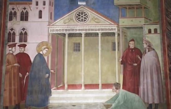 L'attribuzione a Giotto delle Storie della vita di San Francesco, nella Basilica Superiore di Assisi, non è documentata. Da Ghiberti e Vasari, la critica assegnava il ciclo al maestro, ma dai primi anni del ‘900, studiosi di area anglosassone aprirono una diatriba sulla paternità degli affreschi tutt’ora in corso.