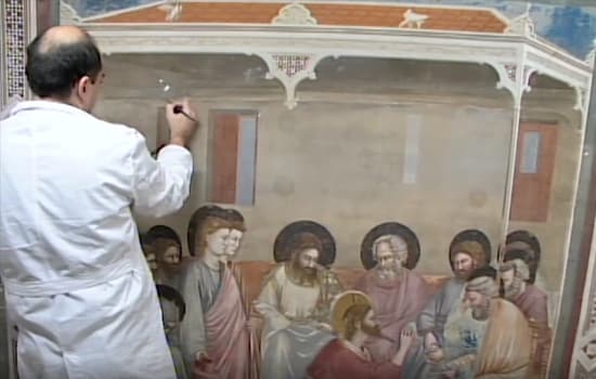 Il restauratore Bruno Zanardi, in una lezione di liceo, spiega perché Giotto, a suo parere, nella Basilica Superiore di Assisi è un pittore ancora arcaico, medioevale e bizantino. Al contrario, l'esperto della materia pittorica di Giotto, vede un artista gotico, perché capace di innestare nel naturalismo del nuovo stile, la matrice classica. Giotto, umanista ante litteram !