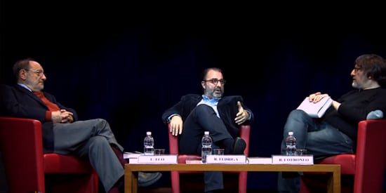 20 marzo 1997: Beppe Severgnini inaugura il programma di Rai International, Italians, ospitando Umberto Eco e intervistandolo sul carattere degli italiani. Secondo Eco gli italiani si parlano addosso, mentre i francesi, cultori della conversazione, riescono a fare programmi come Apostrophe con dialoghi approfonditi e dotati di musicalità. Eco critica la mancanza di cultura musicale degli italiani e loda l’università italiana.